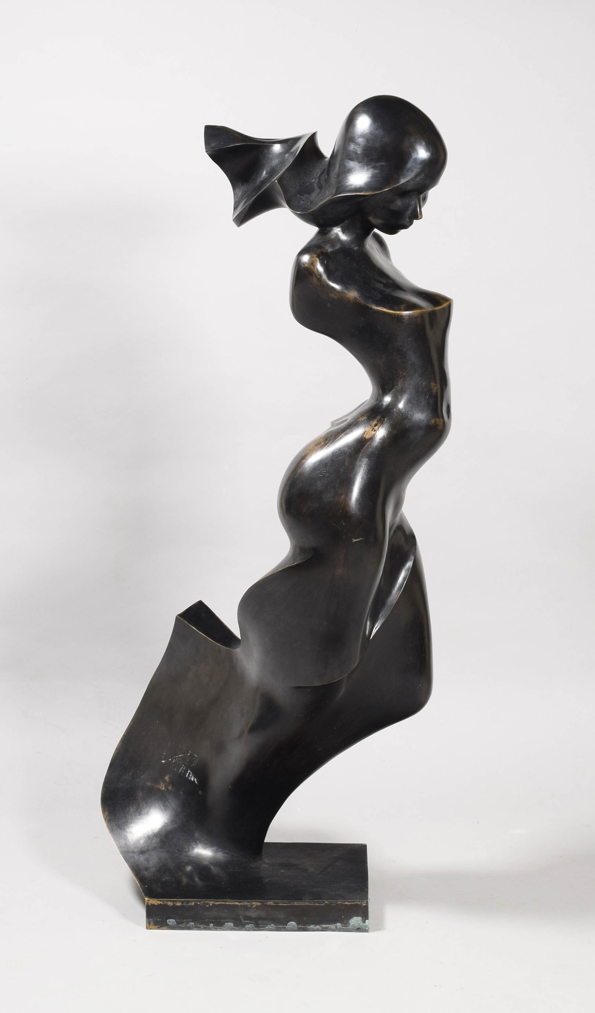 brąz patynowany, podstawa kamienna; wys. 73 cm; podstawa: 21 x 14 x 5 cm; sygn. i nakład u dołu, na brązowej podstawie z tyłu: MANDL w prostokącie, obok napis oraz dalej nakład: 2/8 i nieczytelny wycisk.