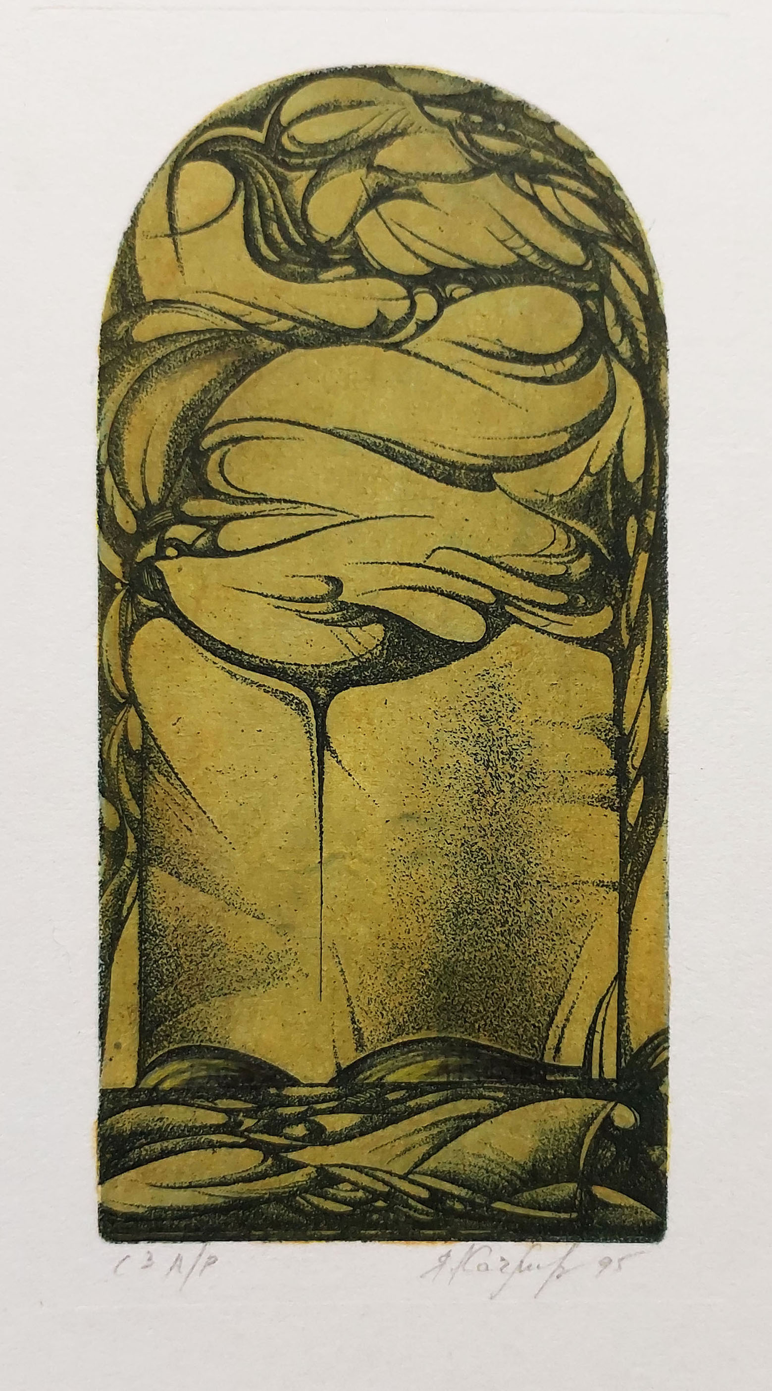 akwaforta, papier, 5 cm × 11 cm; sygnowana i datowana ołówkiem u dolu pod kompozycją, l.d.: technika oraz oznaczenie egzemplarza - C3 A/P; p.d.: podpis artysty