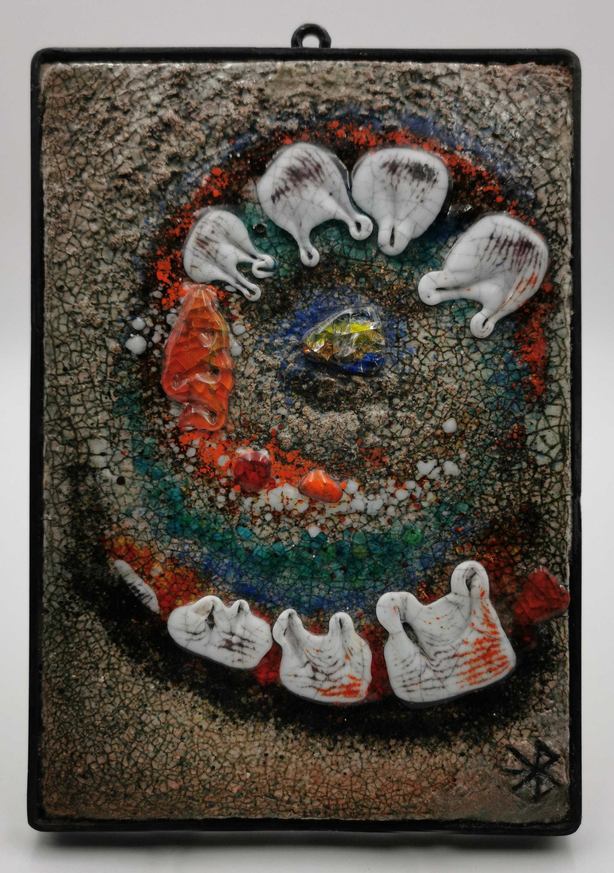 cement, metal, emalia, szkło, krakelura; 30 x 20 cm;