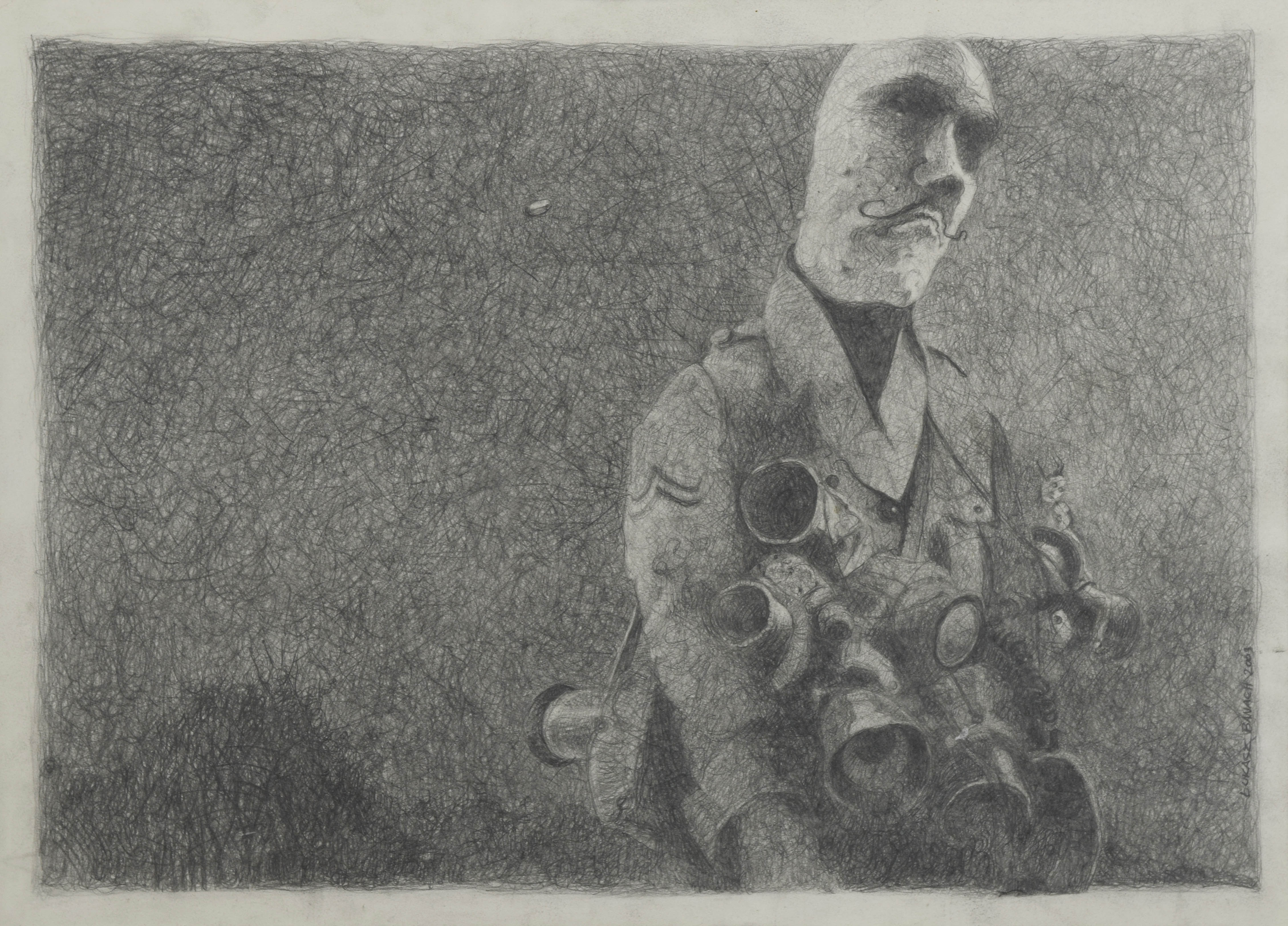 ołówek, papier; 30 x 42 cm (wymiar arkusza), 27,5 x 39,5 cm (wymiar kompozycji);sygn. wzdłuż prawej krawędzi: Łukasz Banach 2003 (ołówkiem).