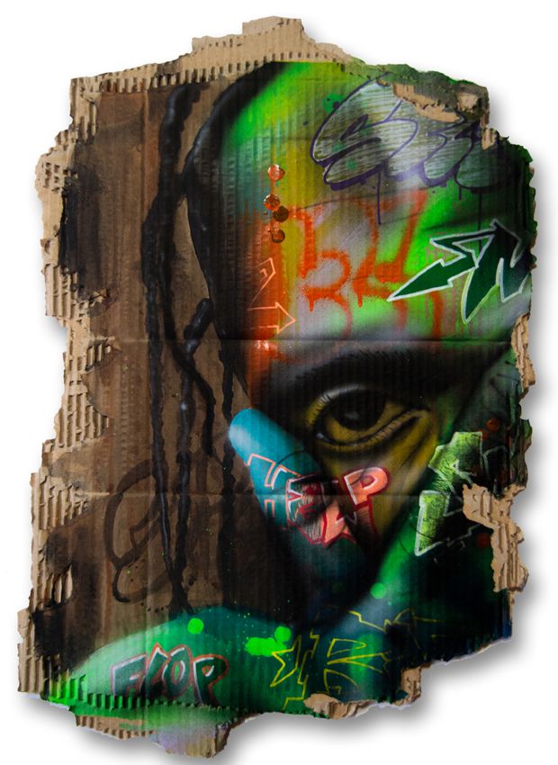 technika mieszana na tekturze falistej, 60 x 40 cm