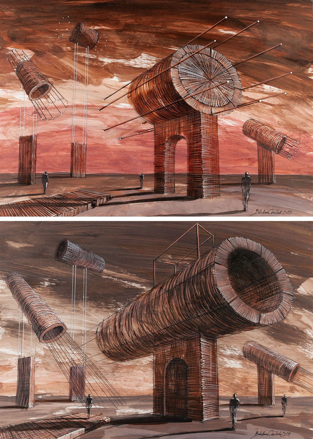 kredka, tusz/papier,każda z prac: 28,5 x 40sygnowany i datowany p.d.: 'Bohdan Cieślak 2015' (obie prace)opisany na odwrociu