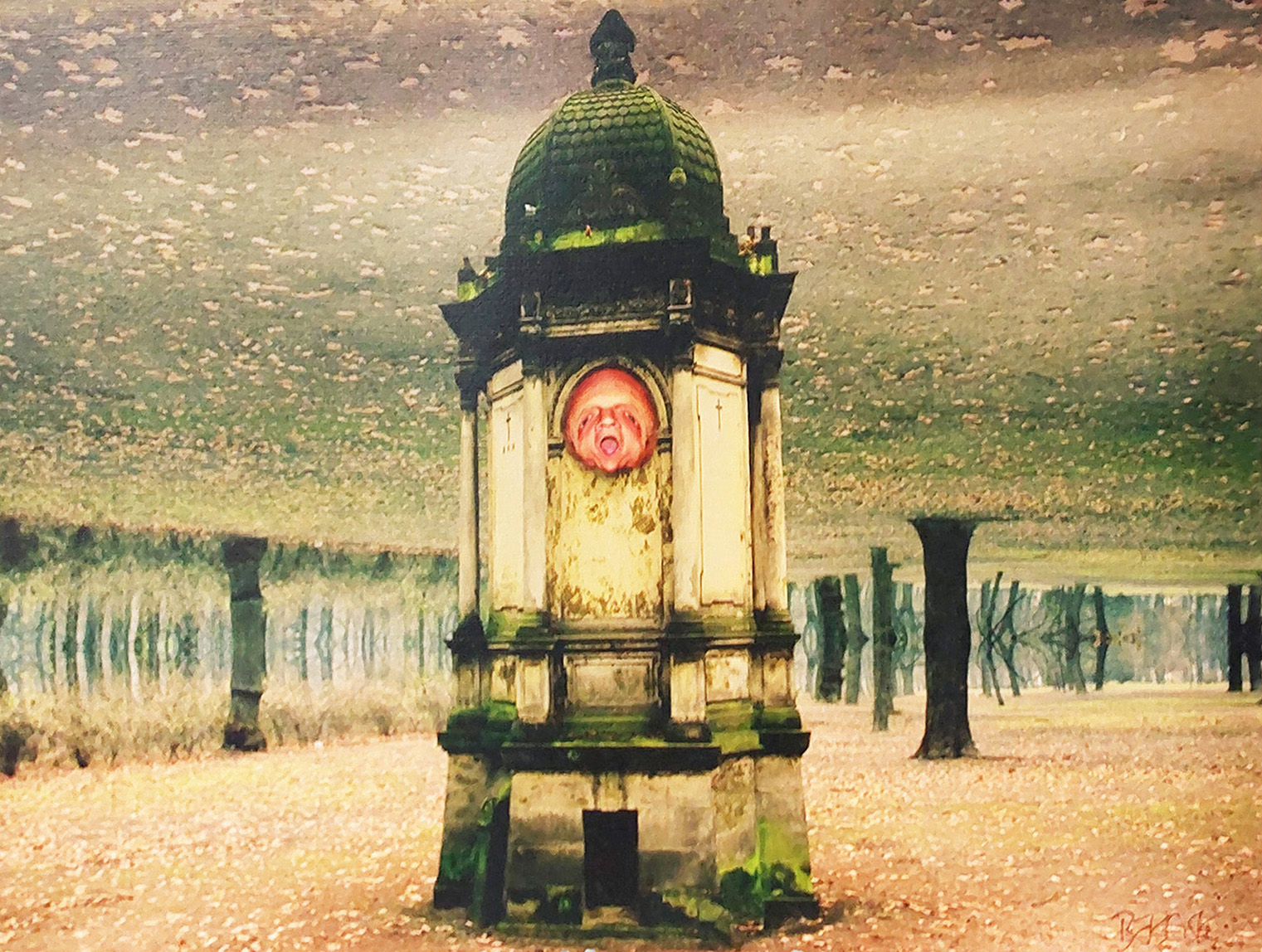 Fotomontaż komputerowy na papierze w formacie 40 x 30 cm., praca podpisana własnoręcznie przez artystę w prawym dolnym rogu kompozycji.