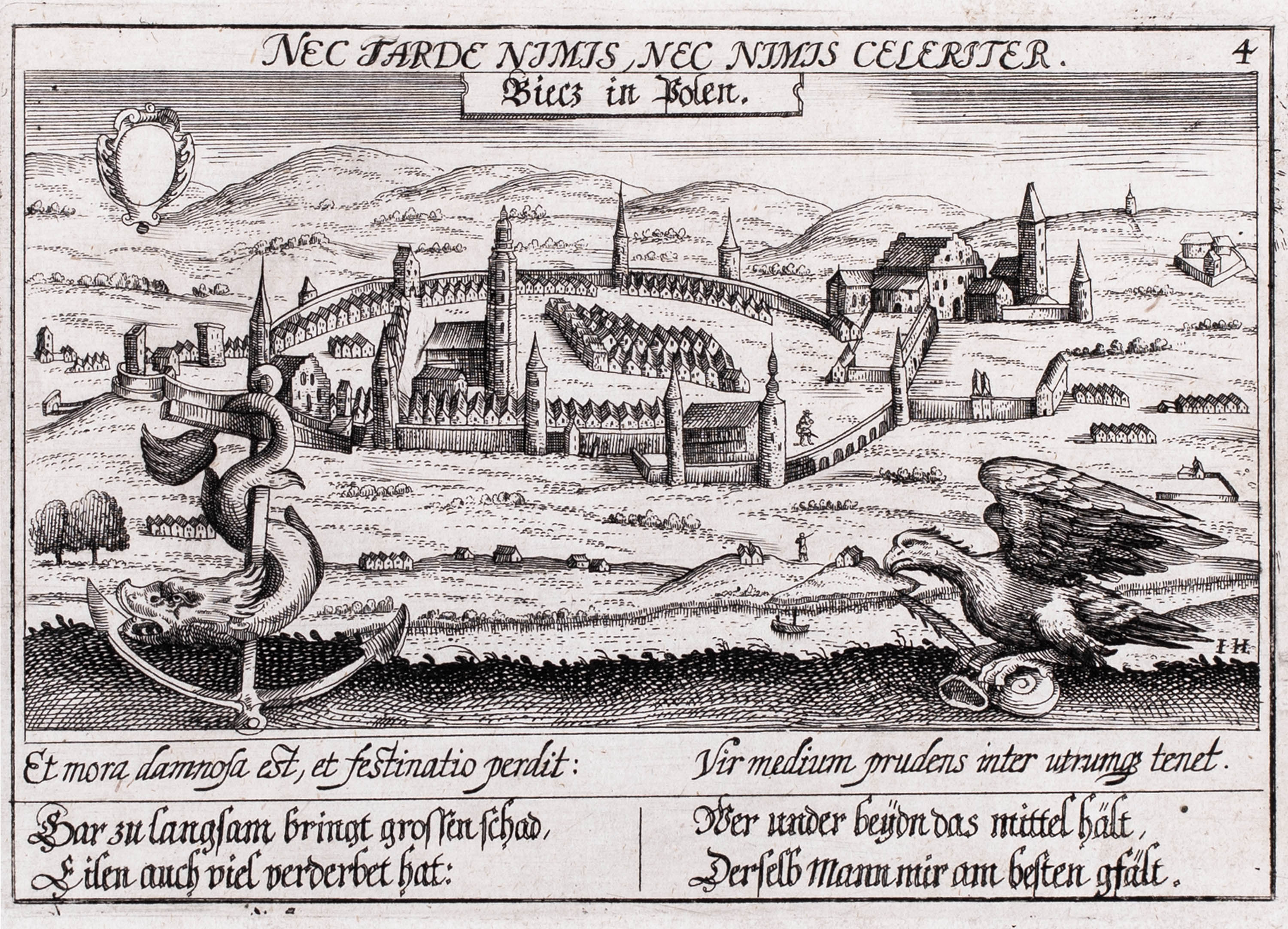Widok Biecza pochodzący z „Thesaurus Philo-Politicus…“, Eberhard Kieser, Frankfurt nad Menem, 1623miedzioryt, 10,2 x 14,2 cm (odcisk płyty)stan zachowania bardzo dobry
