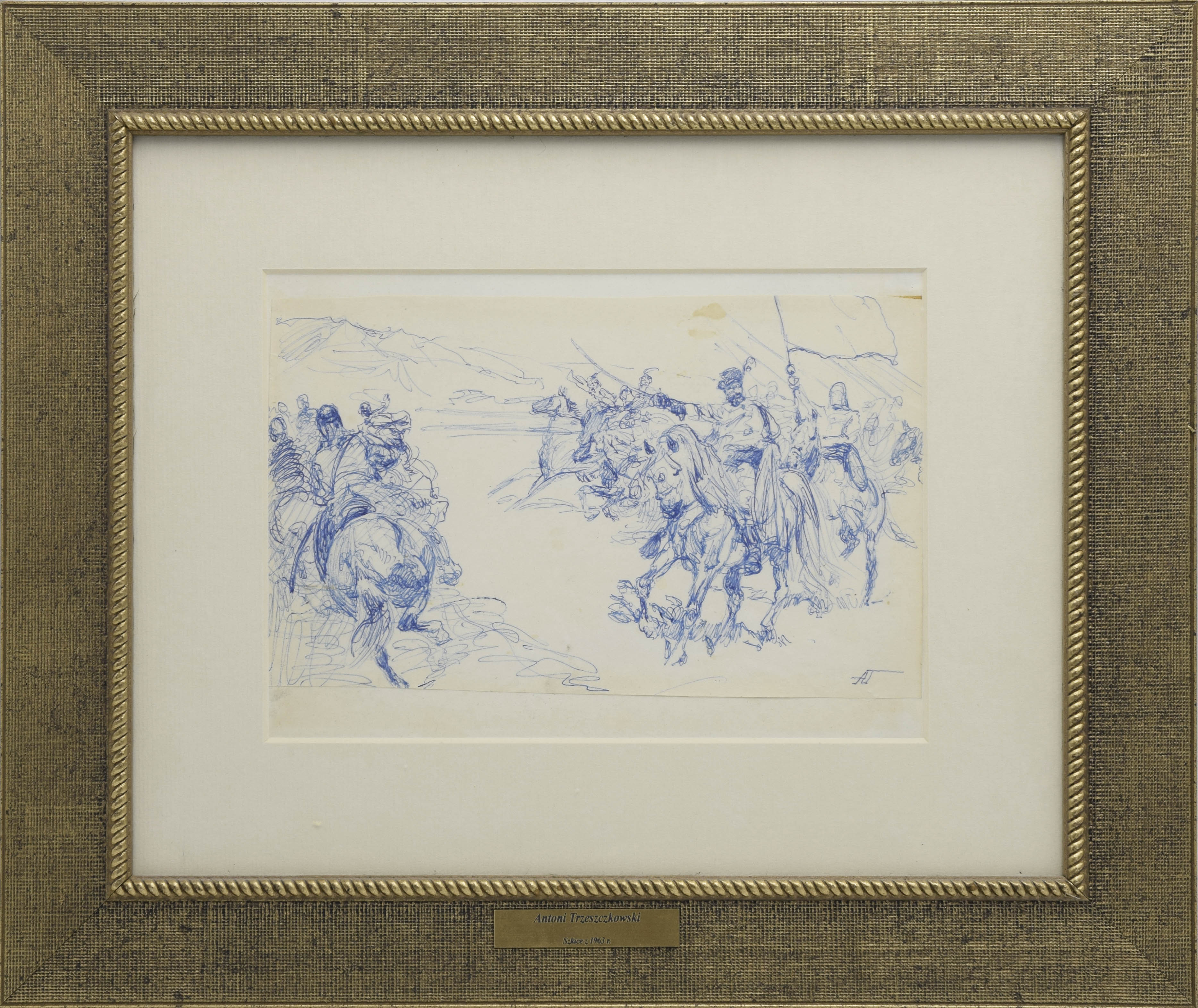 długopis, papier; 12,5 x 20,5 cm (w świetle passe-partout);