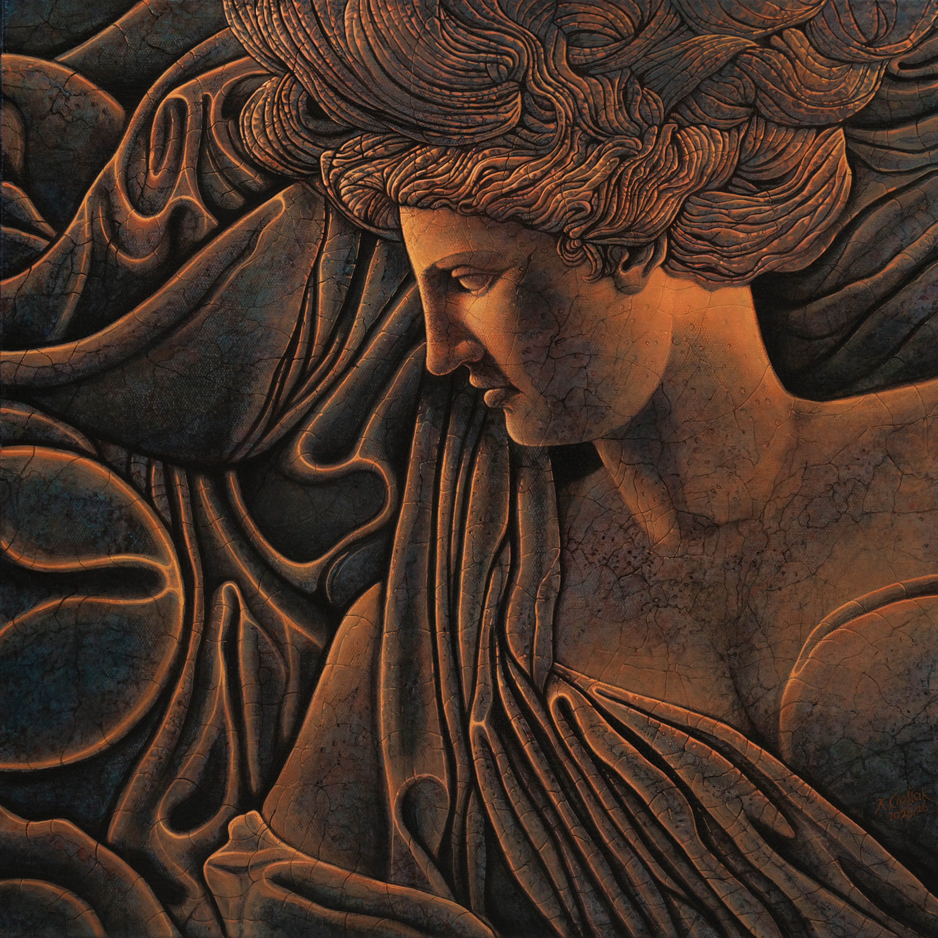 olej, płótno, 60 x 60 cm,sygnowany p. d.: "K. Cieślak | 2025/26" i opisany na odwrocie: "BLASK SPEŁNIENIA… | THE GLOW OF FULFILLMENT… | KRZYSZTOF CIEŚLAK | 2025/26"