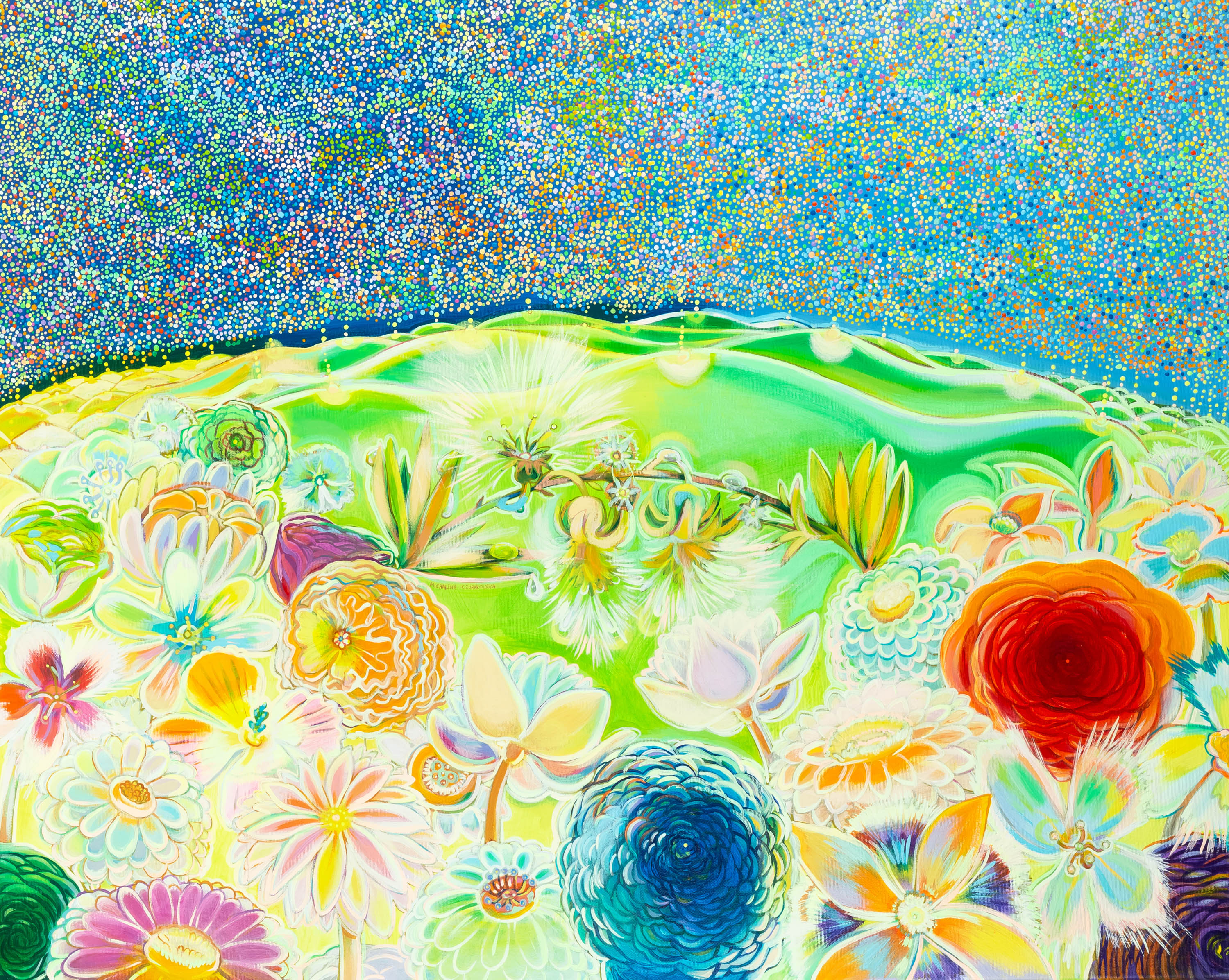 akryl, płótno, 80 x 100 cm,sygn., dat. i opisany na odwrocie: Michalina Czurakowska, 20.02.2025 / "Blisko siebie" / "Toghether"
