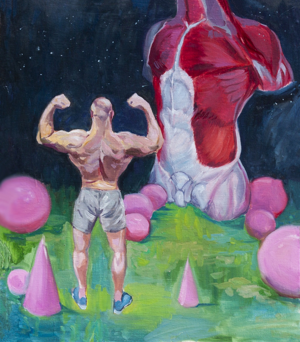olej, płyta drewniana z naklejonym płótnem, 80 x 70 cm, w oprawie: 82,5 x 72,5 cm,sygn. l.d.: piktogram, oraz na odwrocie