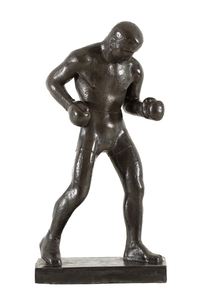 Modelem i inspiracją dla prezentowanej rzeźby „Bokser” stał się Henryk Chmielewski (1914-1998). Chmielewski był polskim bokserem, olimpijczykiem i mistrzem Europy. Po ukończeniu szkoły powszechnej dwa lata uczył się w Państwowej Szkole Techniczno-Przemysłowej, by w rezultacie uzyskać uprawnienia mistrza farbiarskiego. Przez siedem lat pracował na wydziale farbiarskim Zakładów Fabrycznych Spółki Akcyjnej I. K. Poznański. W 1938 roku wyjechał na stałe do Stanów Zjednoczonych. Trenowanie gimnastyki rozpoczął w 1927 roku w miejscowym kole Towarzystwa Gimnastycznego Sokół w Łodzi, a następnie kontynuował treningi w sekcji bokserskiej pod kierunkiem Tadeusza Kwiatkowskiego. Już w marcu 1928 roku zdobył mistrzostwo Łodzi juniorów. Największy sukces odniósł zdobywając mistrzostwo Europy w wadze średniej podczas Mistrzostw Europy w Mediolanie w 1937 roku. Podczas igrzysk w Berlinie w 1936 roku zajął 4 miejsce w wadze średniej. Trzykrotnie był mistrzem Polski, w 1931, 1933 i 1936 roku, a w 1935 wicemistrzem Polski. Stoczył w karierze amatorskiej 157 walk, wygrywając 133, 11 razy zremisował. Stoczył również 82 walki zawodowe. Karierę zakończył w 1952 roku. Pływał wówczas na statkach jako mechanik okrętowy. W 1987 roku otrzymał nagrodę im. Aleksandra Rekszy.