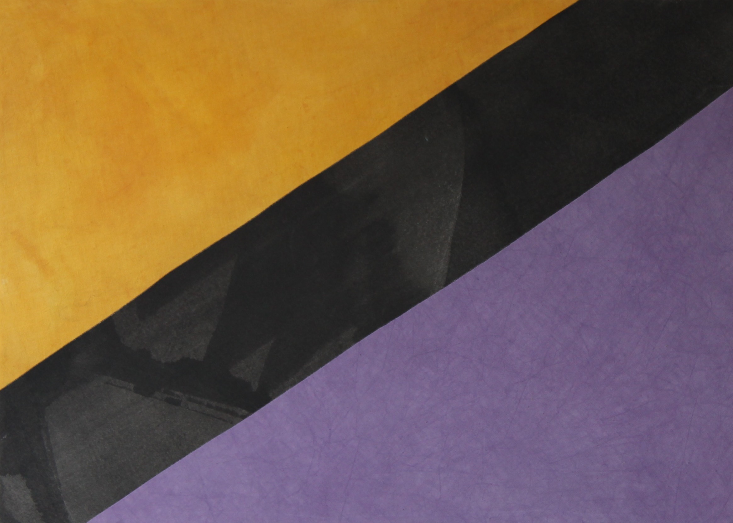 akryl na płótnie, farbowana bawełna, nici, 50 x 70 cm