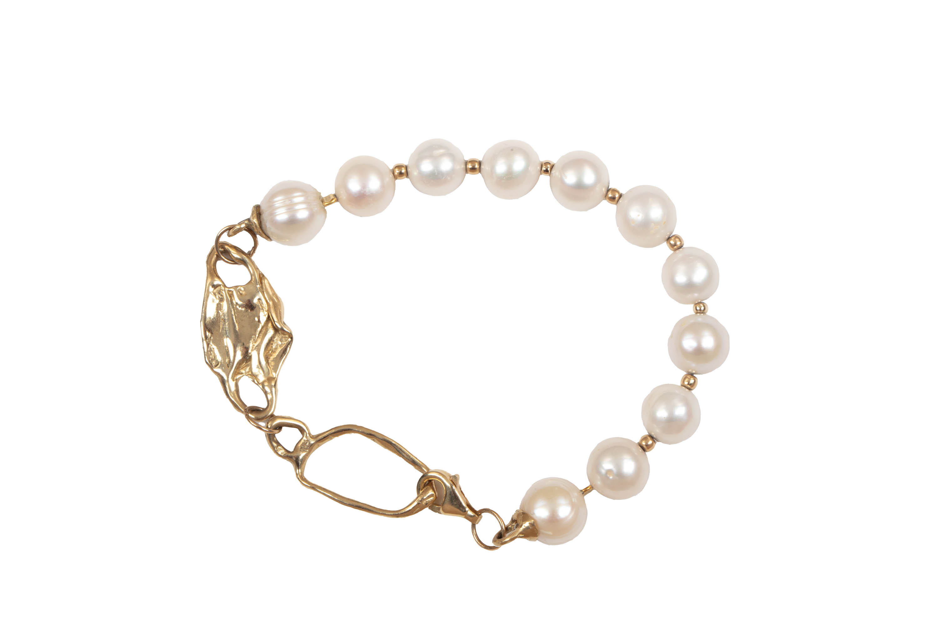 złoto pr. ok. 0,585, m. 19,75 g11 szt. pereł hodowanychimiennik jubilerski "łabędź" przy zapięciudł.: ok. 20 cmprojekt autorski