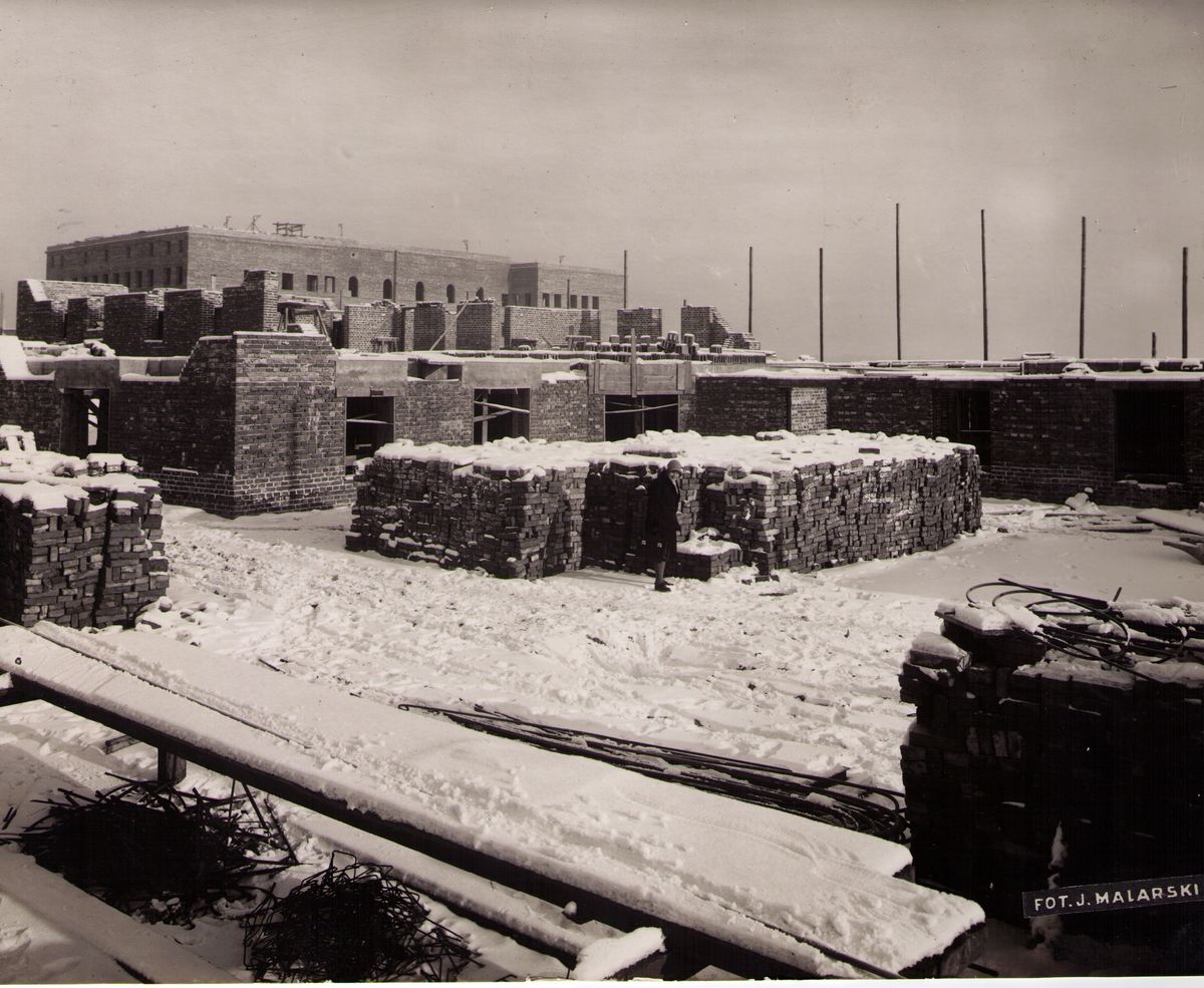 Na odwrocie stempel:Agencja Fotograficzno-Prasowa / Jan Malarski / Chmielna 10, tel. 224-20 / Prawo reprodukcji zastrzeżone; maszynopis: Budowa Ośrodka Zdrowia przy ul. Opaczewskiej na Ochocie.- 1929 r.