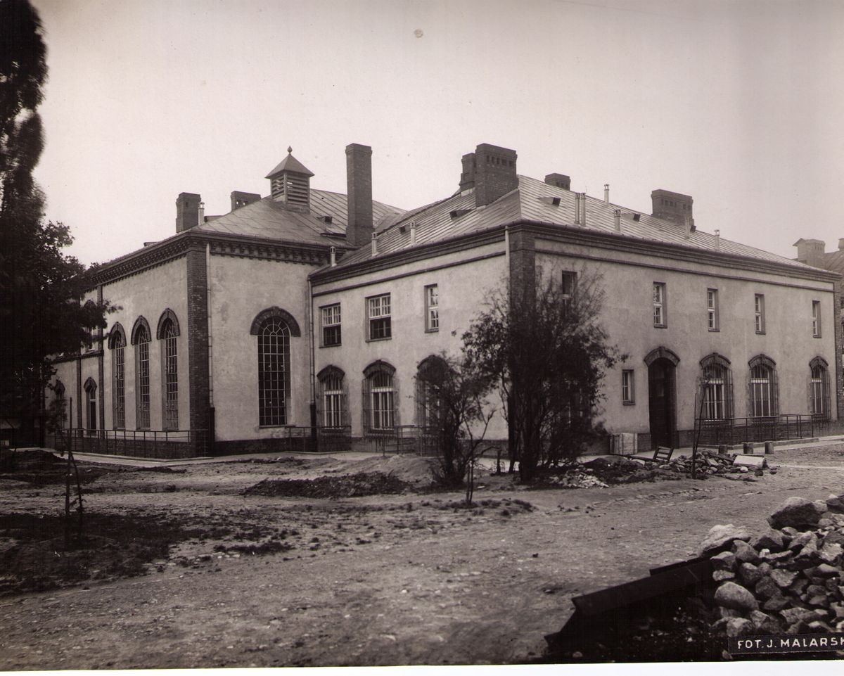 na odwrocie stempel: Agencja Fotograficzno-Prasowa / Jan Malarski / Chmielna 10, tel. 224-20 / Prawo reprodukcji zastrzeżone; maszynopis: Budynek kuchni szp. Dzieciątka Jezus dnia 13.X.1930 r.