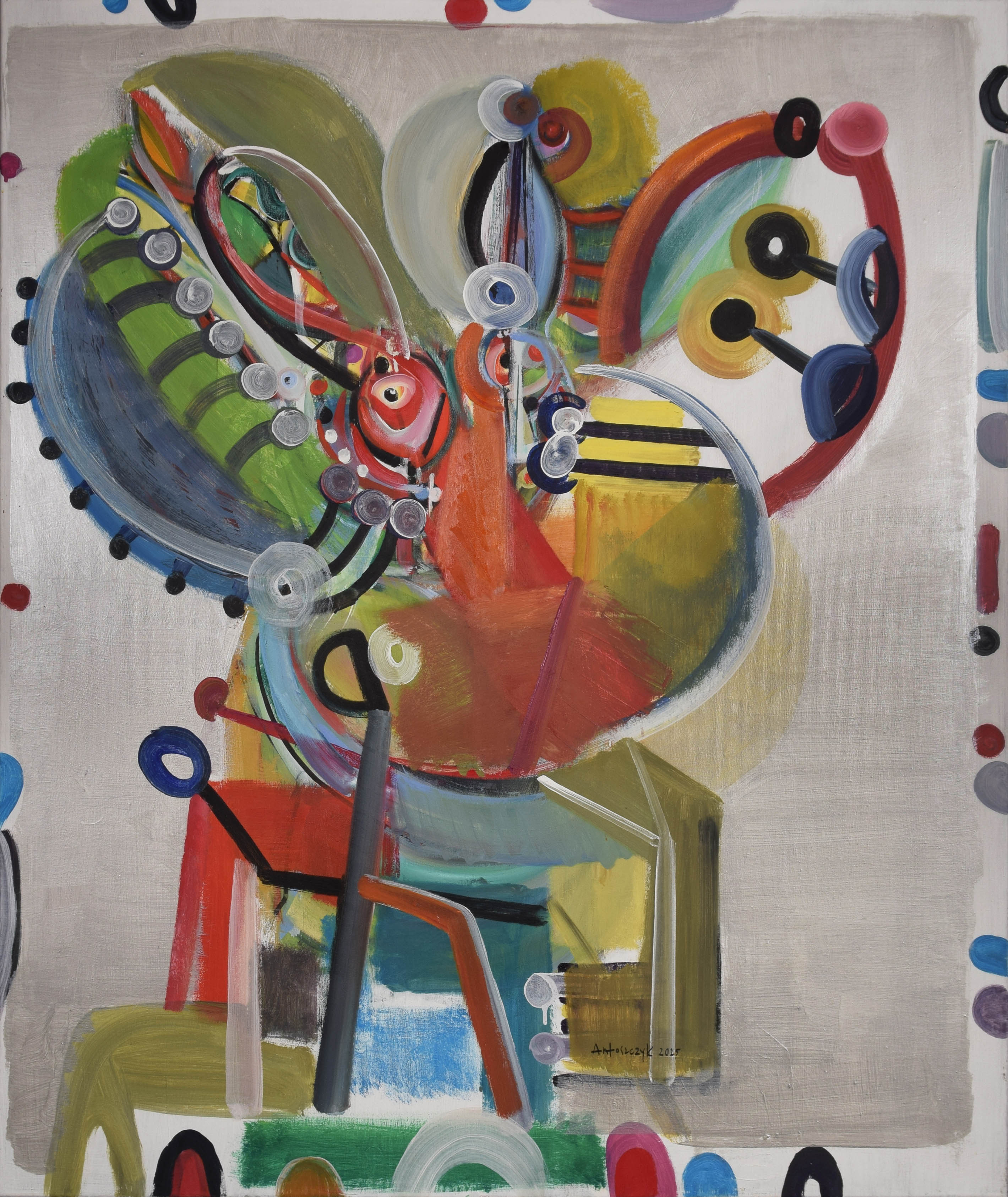 olej, akryl, płótno; 120 x 100 cm;sygn. p. d. J.Antoszczyk;opisany na odwrocie: JANUSZ ANTOSZCZYK / BUKIET SOLENIZANTA * 2025 / OLEJ * AKRYL*PŁÓTNO / 120/100 CM.