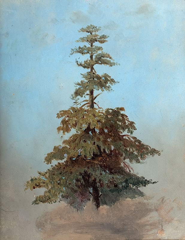 Studium drzewa, 1887 r. olej, karton, 23 × 17,5 cm w świetle oprawy na odwrocie odręczny podpis ołówkiem "Max Buri 1887"