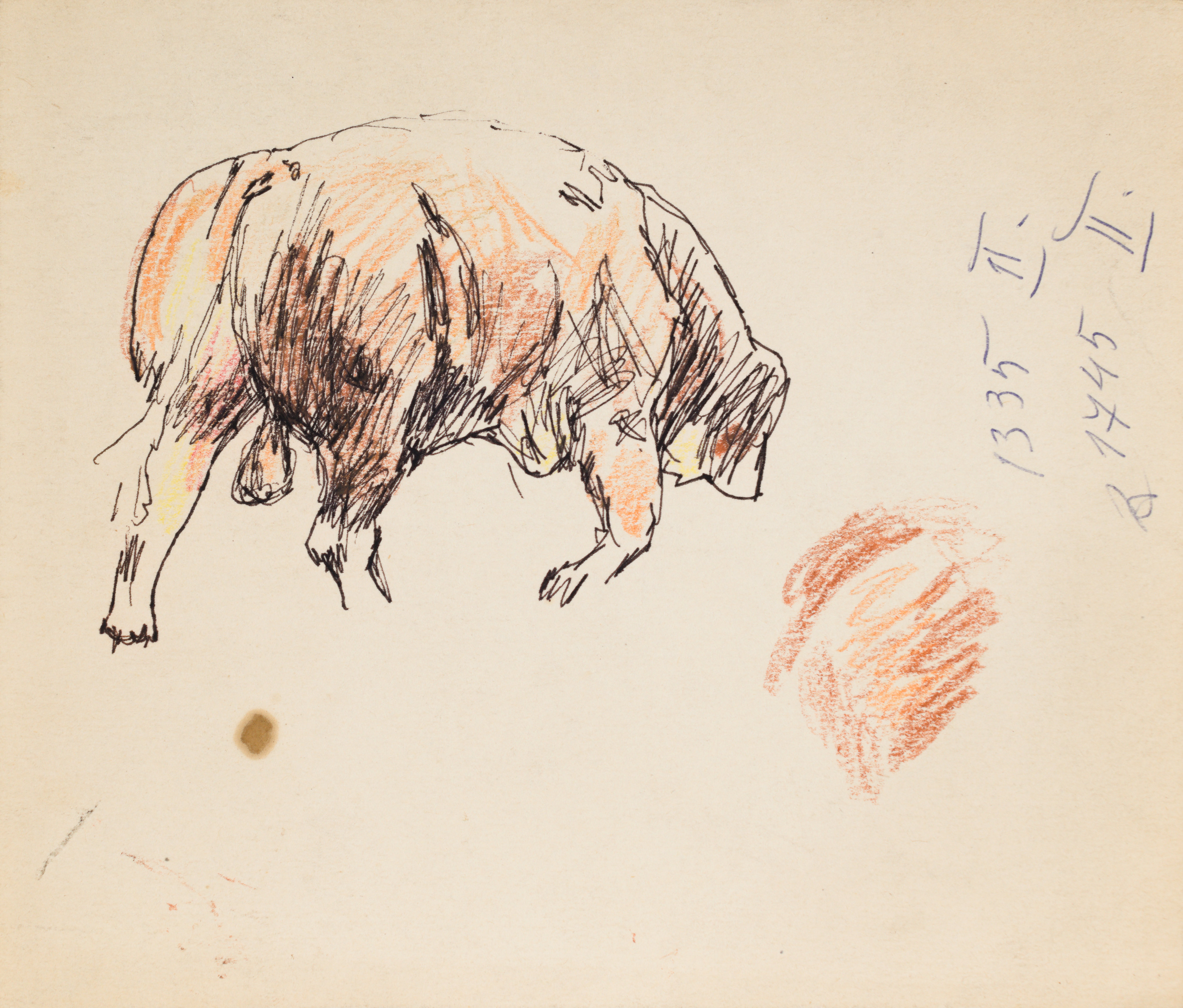 tusz, kredki, brytsol; 19 x 22,3 cm;
