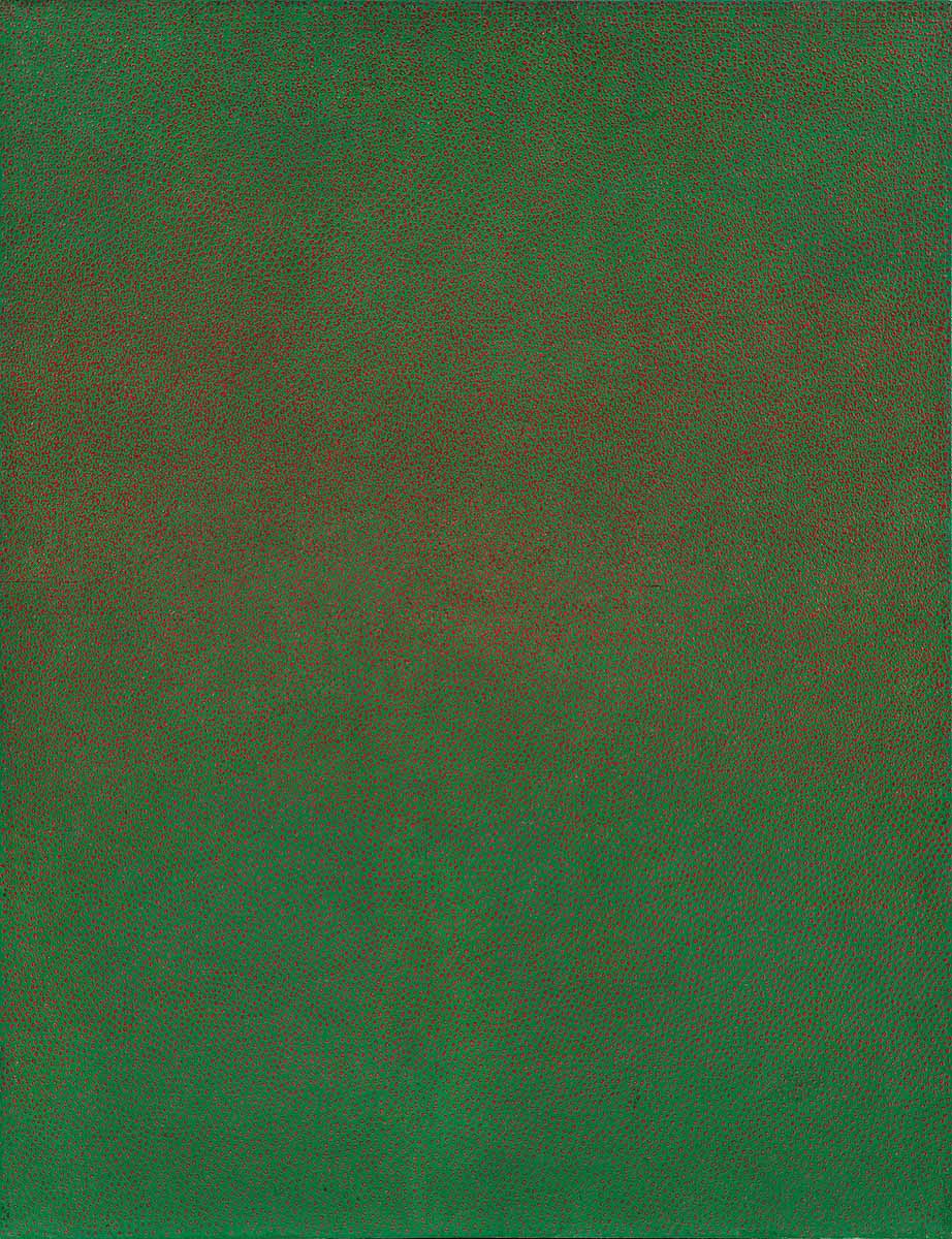 Prezentowany „CCCCXLVIII” z 1979 roku stanowi syntezę rozważań Gierowskiego nad op-artowską koncepcją budowania przestrzeni. Na pokryte soczyście zieloną farbą płótno artysta naniósł punkty kontrastującej, intensywnej czerwieni. Rozlewające się po powierzchni plamki zmieniają rytm i gęstnieją w centralnej części kompozycji, tworząc pulsujący układ barwnych napięć. Nakładające się kolory wibrują, emanując światłem i dając wrażenie optycznej głębi – rodzącej się w oku i świadomości widza. Silne zestawienie zieleni i czerwieni działa jak zderzenie dwóch żywiołów, dwóch odmiennych emocji. Odbiorca, rejestrując na płótnie kontrastujące barwy, doświadcza równocześnie energetyzującej siły czerwieni i kojącej mocy zieleni. Kolor staje się tu narzędziem budowania dynamiki oraz wywoływania przestrzennych iluzji. Jak zauważał sam artysta: „Obszary punktów tworzą przestrzenie, które mogą prowadzić w wiele różnych miejsc” (S. Gierowski, Wstęp, w: Stefan Gierowski. Inna przestrzeń, katalog wystawy, Warszawa 2021).