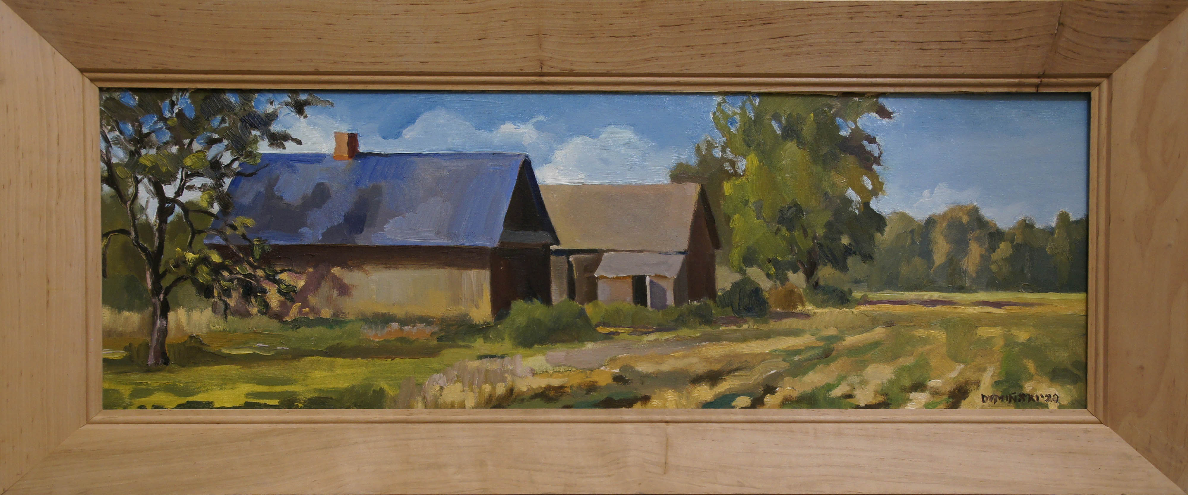 olej na płótnie, 30 x 90 cm, w oprawie (surowe, jasne drewno) - wymiary w oprawie 44 x 104 cm, sygn. pdr DYMIŃSKI'20, sygnowany i opisany i datowany na odwrocie