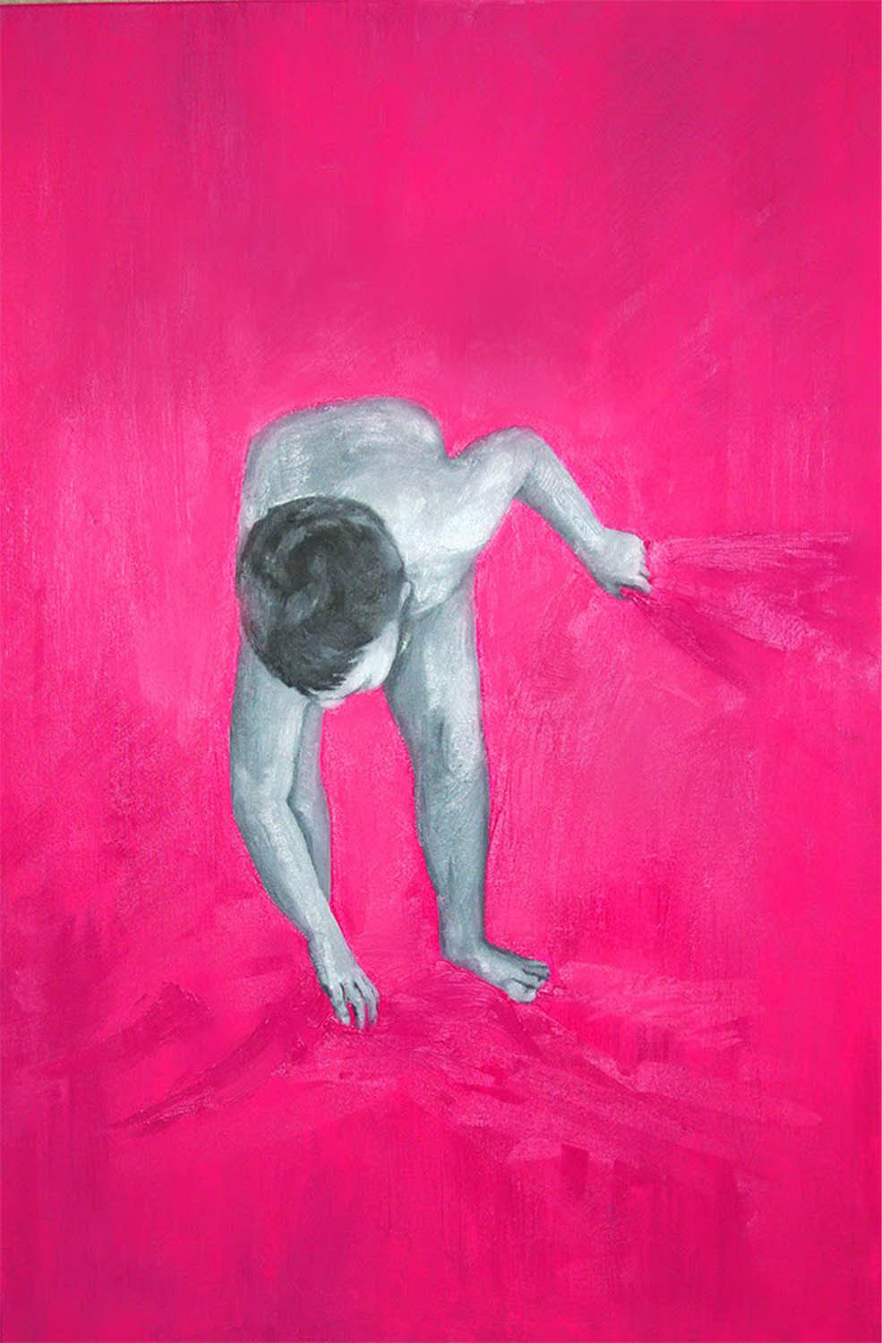 olej, płótno, 120 x 100 cmsygn. l.d.: M.Majchrzak 2010, opisany na odwrocie: Marlena Majchrzak "Chłopiec i różowy" 2010 r.
