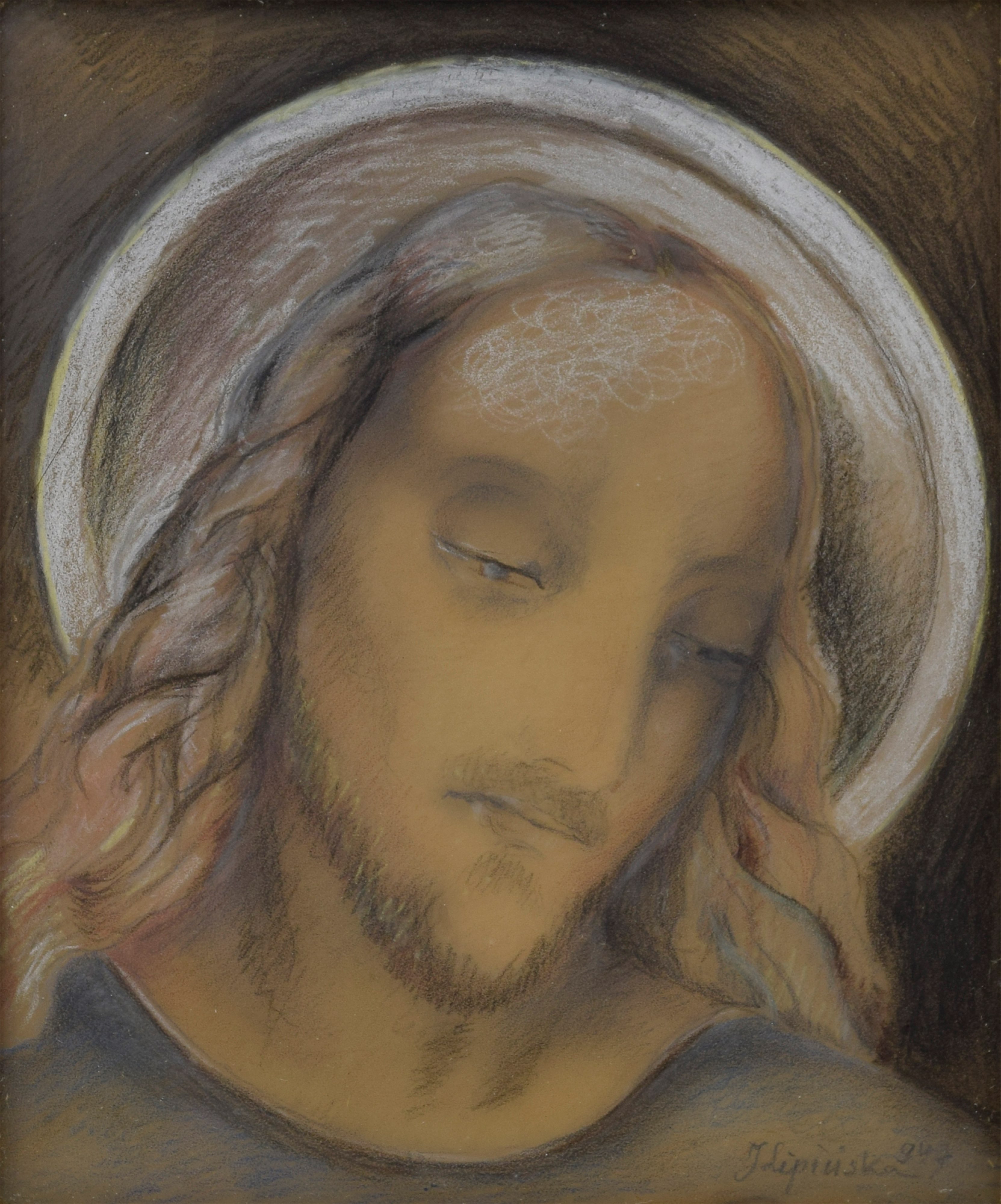 ołówek, pastel, papier; 17 x 14 cm (w świetle oprawy);