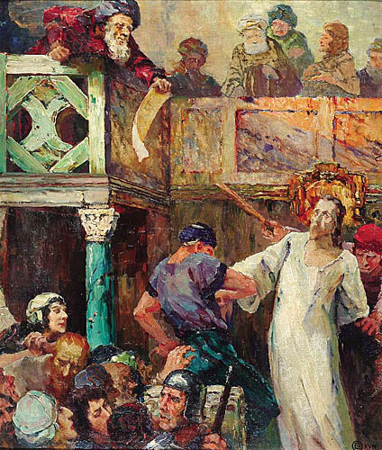 Zupełnie wyjątkowy w znanej twórczości artysty. Świetnie uchwycony nastrój, napięcie między sędzią i Chrystusem. Mimo tematu, nie jest to obraz religijny.