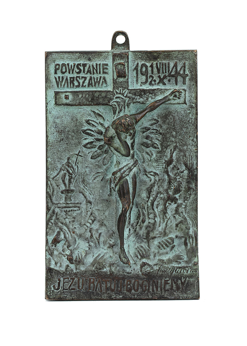 Samą plakietę umieścił Małeta w sierpniu 1946 roku w Alejach Jerozolimskich na ścianie zrujnowanej kamienicy, pod tzw. murem straceń. Przy tej okazji opatrzona została napisem zawierającym daty wybuchu i upadku Powstania. Było to jedno z najważniejszych miejsc pamięci, przy którym codziennie gromadzili się mieszkańcy Warszawy składając kwiaty i paląc znicze. Na przełomie 1948 i 1949 roku plakieta zniknęła w tajemniczych okolicznościach, zdemontowana najprawdopodobniej w ramach szerszej akcji dekrucyfikacji przestrzeni publicznej. Ponownie zamontowana została w 2013 roku.