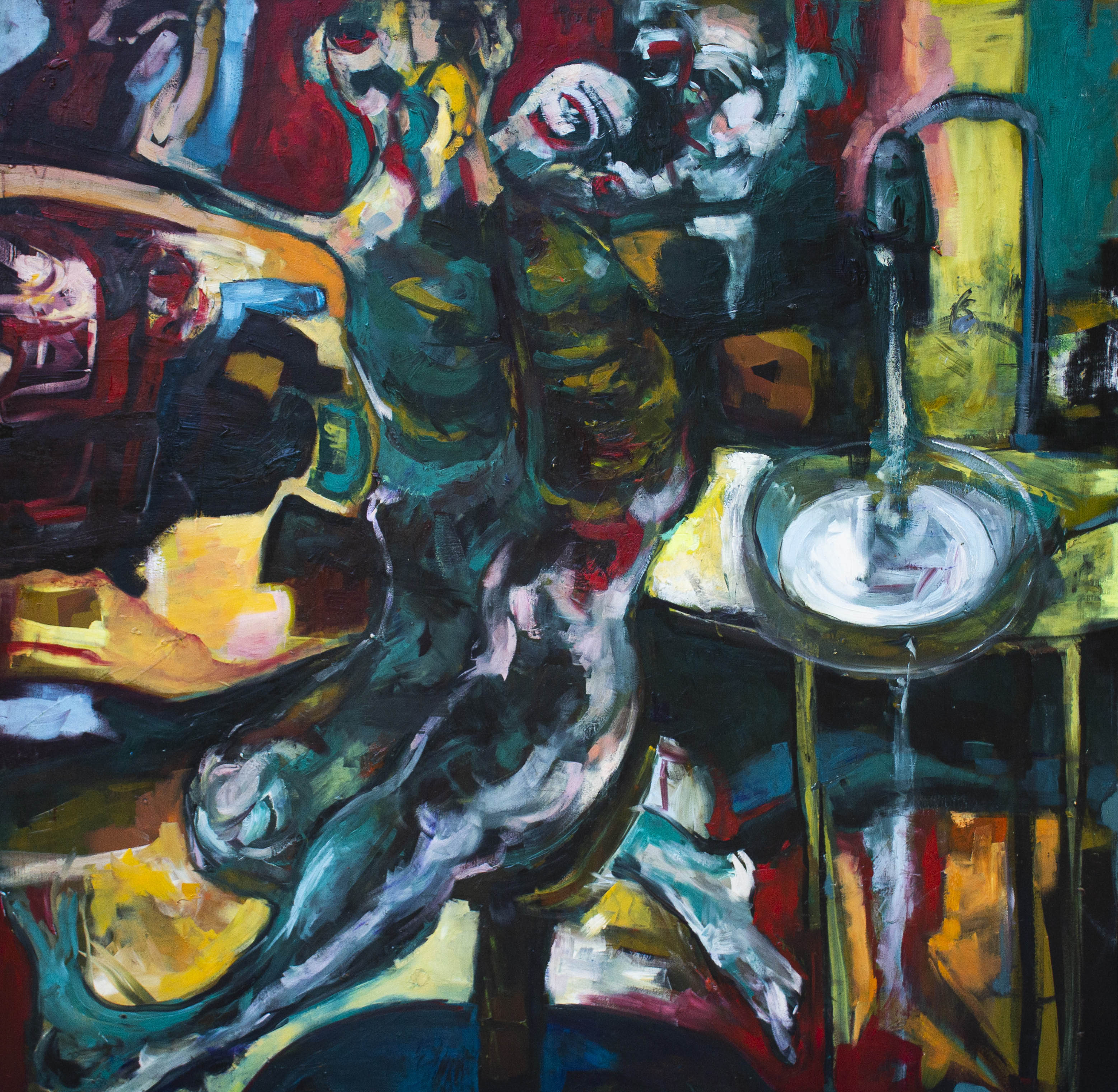 technika mieszana (akryl, olej), płótno, 120 x 120 cm,