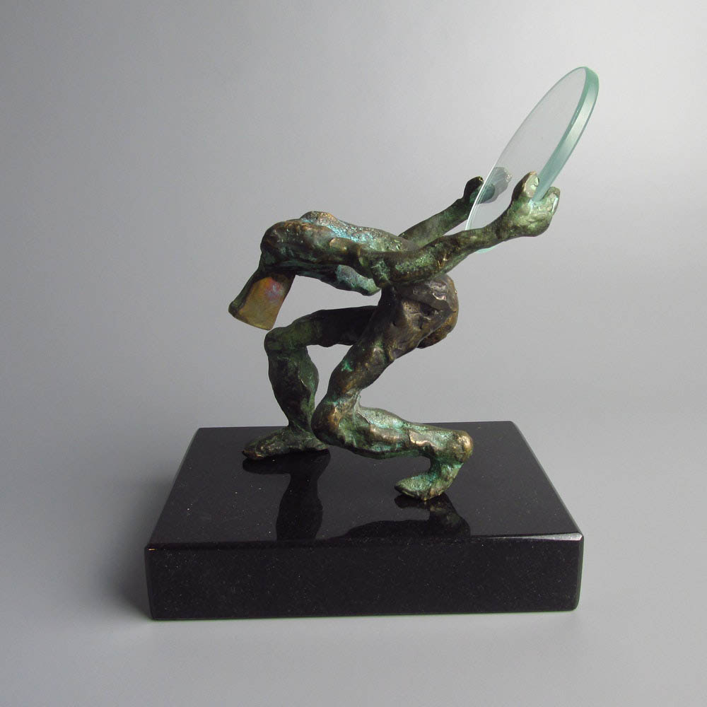 brąz, szkło, granitowa podstawa, 14 x 14 x 9 cm, ed. 5/10,sygnowana i datowana: '5/10 | Koclęga | 2017'
