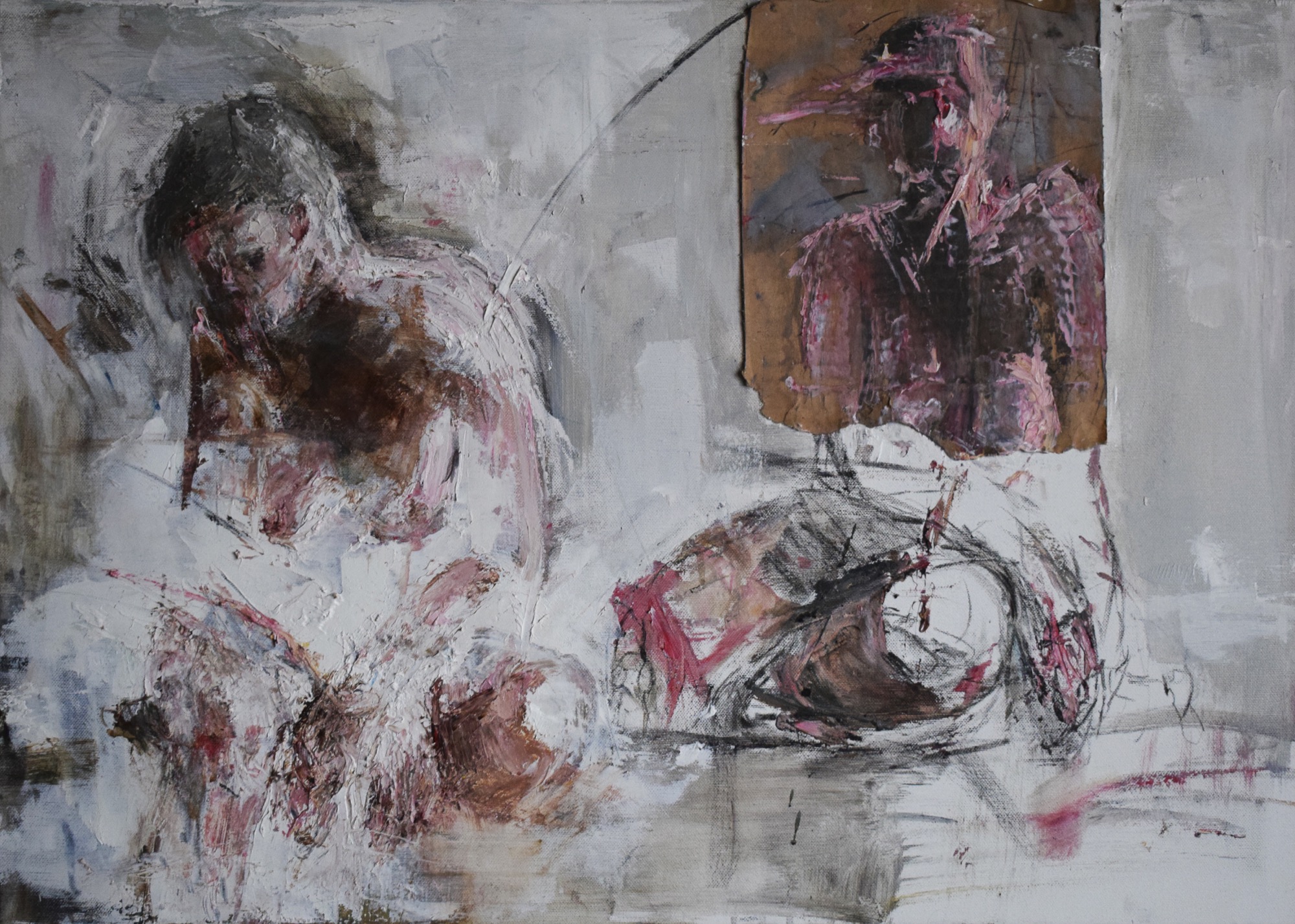 olej, kolaż, płótno, 50x70 cm