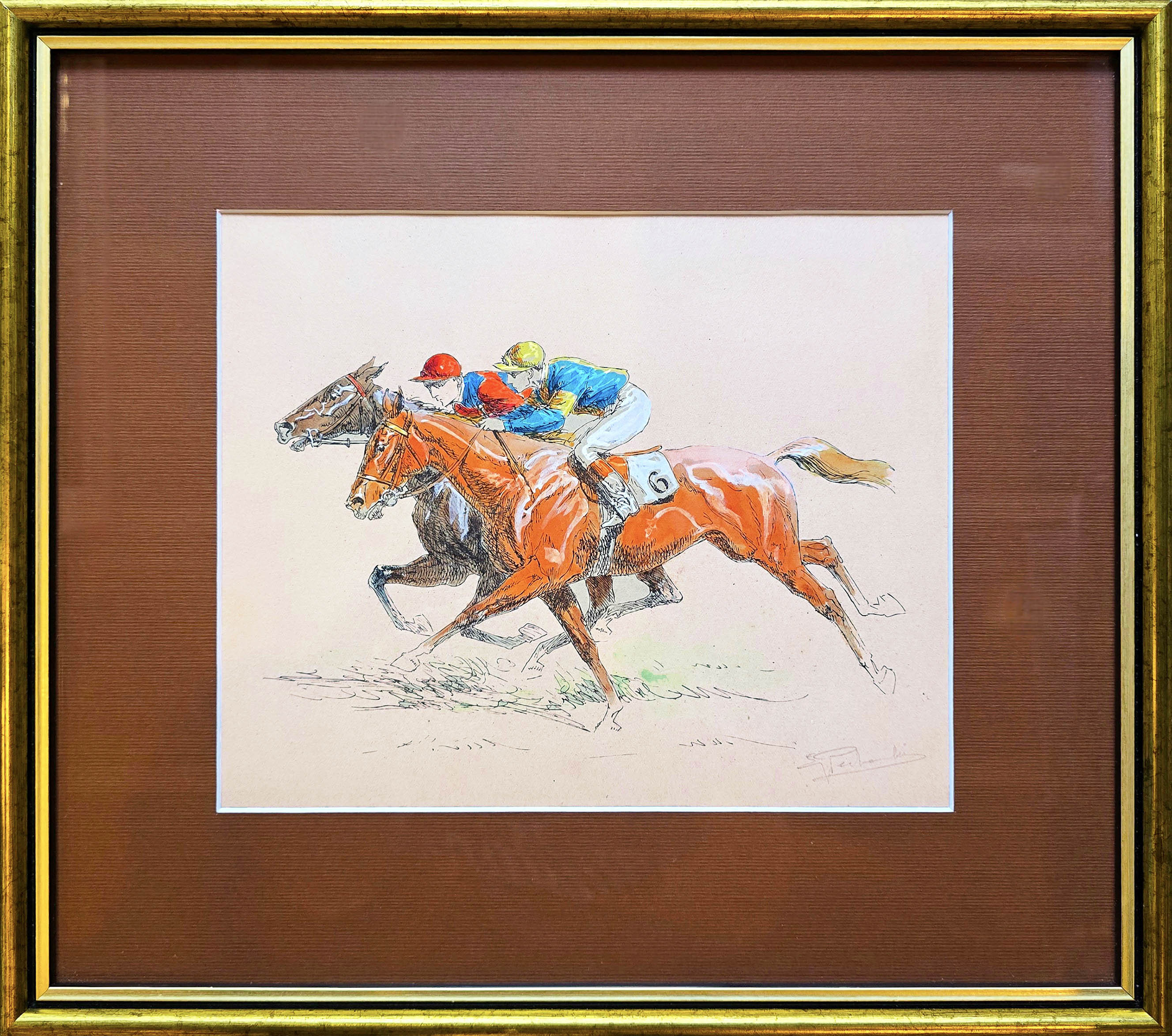 Eugene PÉCHAUBES – francuski malarz koni, zafascynowany wyścigami konnymi. Przez wiele lat nie opuścił żadnego wyścigu koni na hipodromach w Paryżu -Longchamp w Lasku Bulońskim oraz Vincennes. Często był również zamawiany do tworzenia portretów słynnych koni wyścigowych oraz ich właścicieli. Urodzony w 1890 roku w Pantin, a zmarły w 1967 roku w Paryżu, pozostawił po sobie bogatą spuściznę dzieł sztuki o tematyce hipicznej.