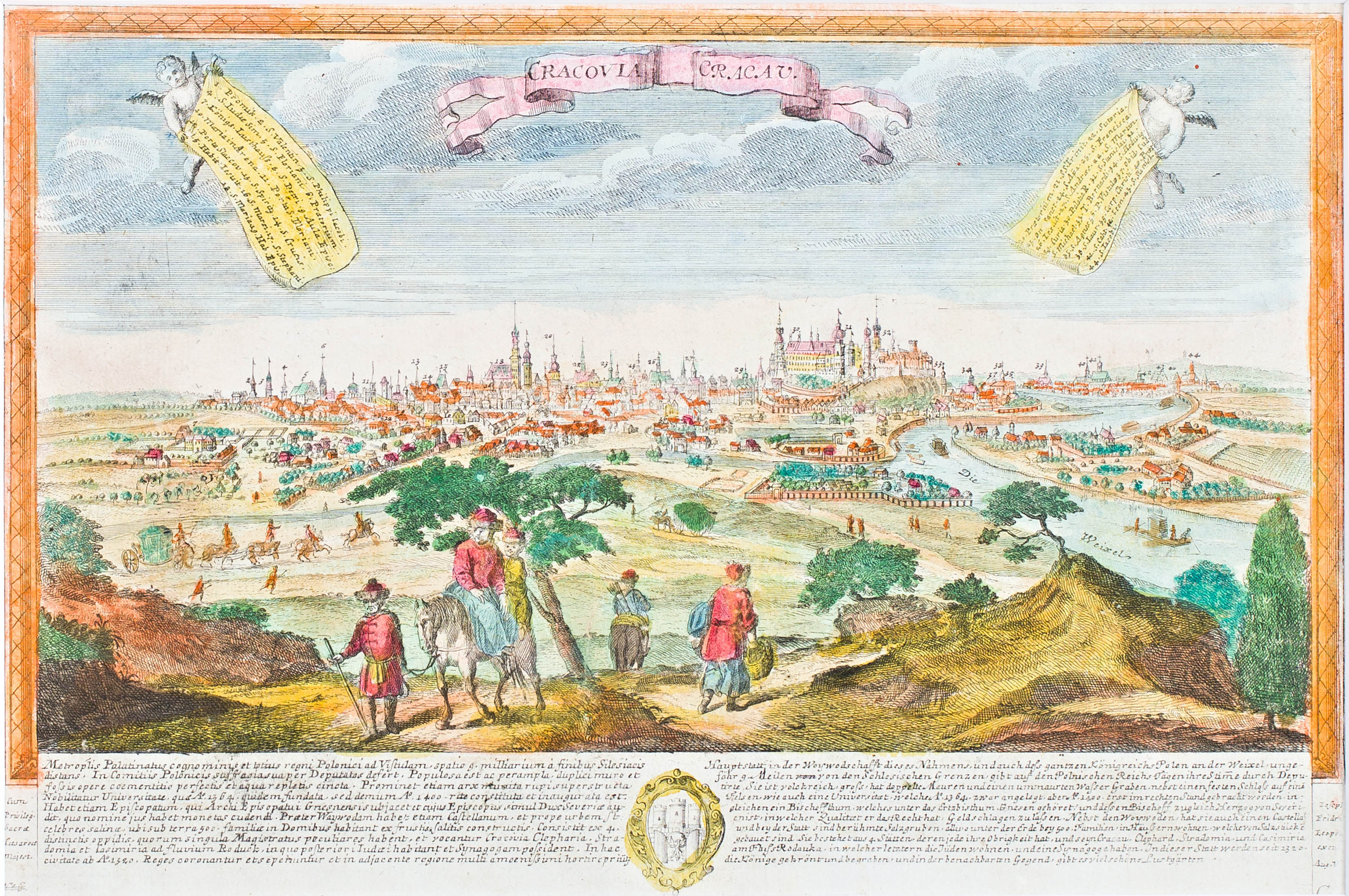 Widok Krakowa od północnego zachodu według F.B. Wernera, Augsburg, ok. 1730miedzioryt kolorowany, 19,5 x 29,5 cm w świetle oprawy
