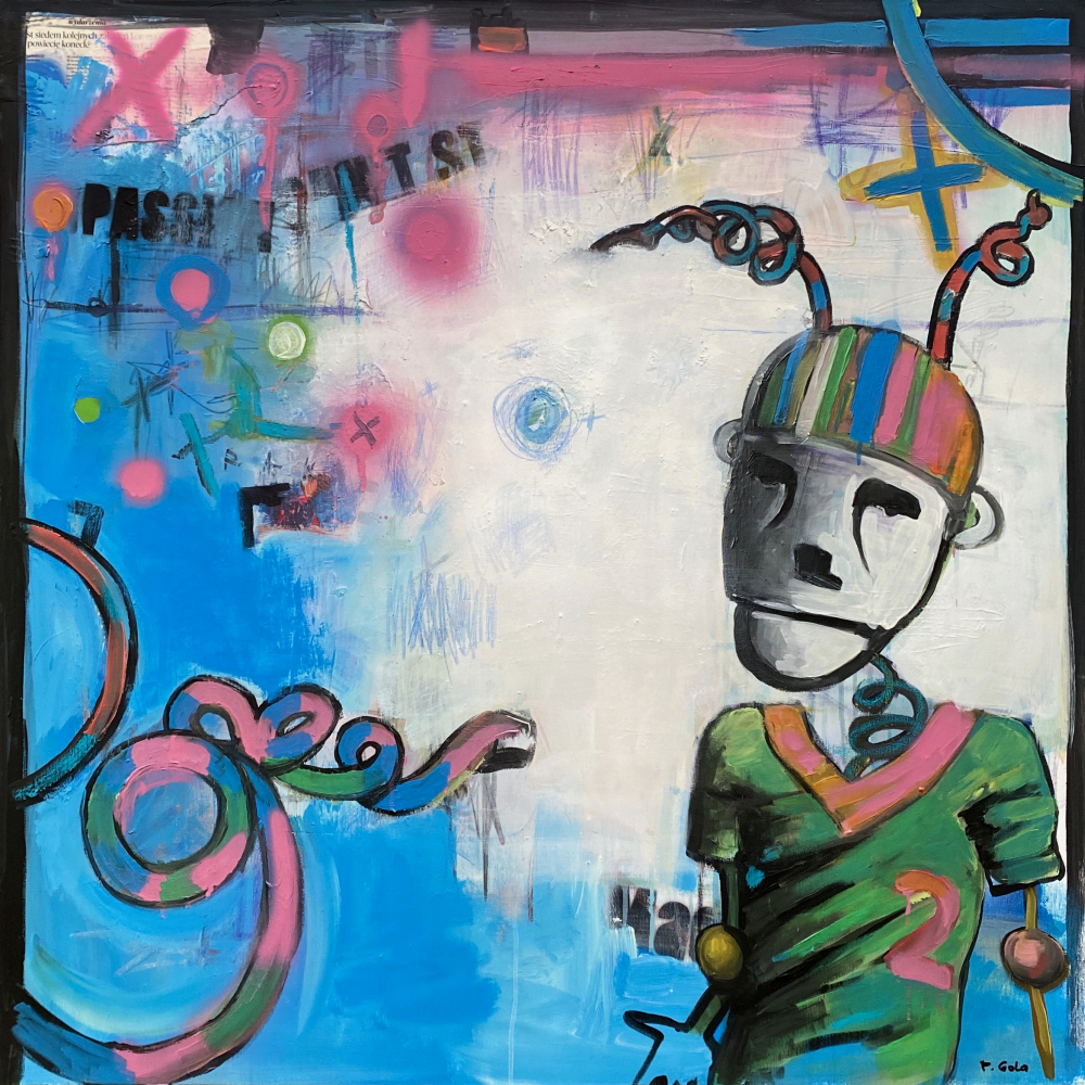 akryl, spray, kredka, płótno
