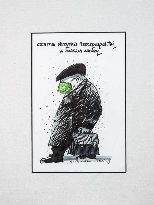 Rysunek tuszem na cienkim kartonie, sygnowany u dołu: "R.Druch" oraz datowany: "2020" i numerowany z katalogu prac wszystkich Artysty: "1473". Praca w doskonałym stanie zachowania. Oprawione autorsko w pass - partout . Długość 179mm, Szerokość 120mm