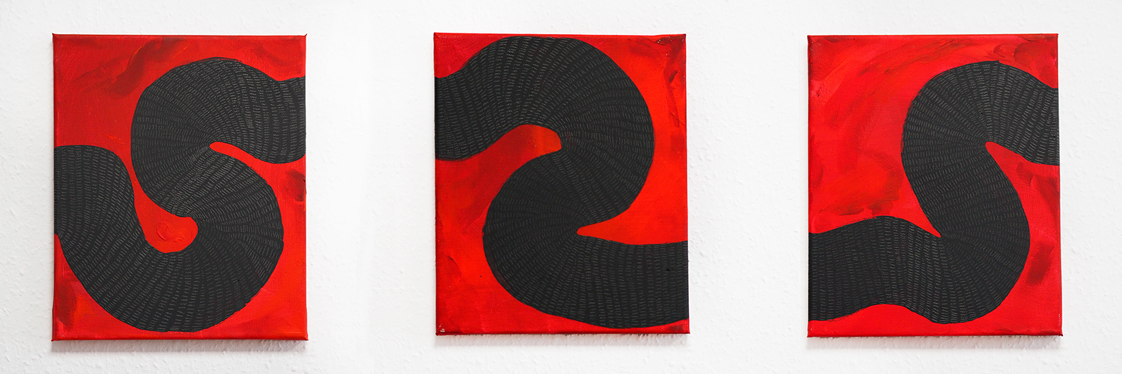 akryl, ołówek/ płótno, 30 x 75,5 cm, tryptyk, sygnowany, datowany na odwrociu ' Dębińska l 2021 '