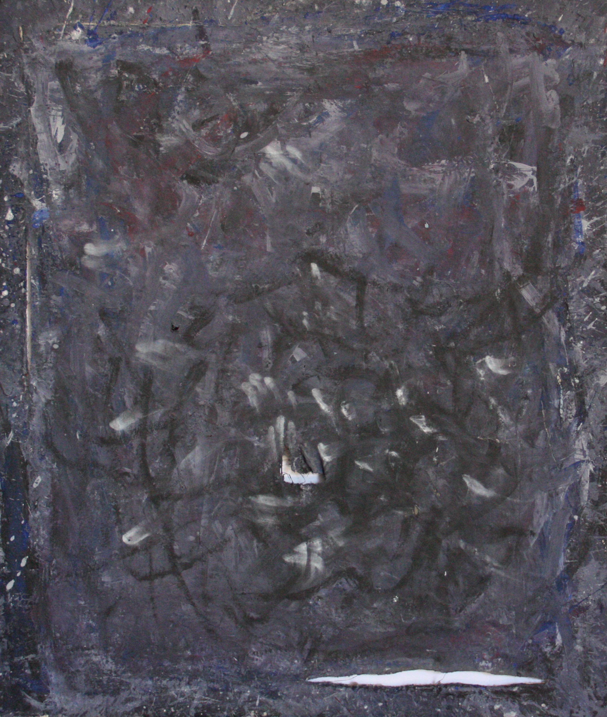 akryl, gwasz, płótno, 110 x 95 cm,sygn. i opisany na odwrocie: JACEK SEMPOLIŃSKI / 1982 / akryl - gwasz / 110 x 95 cm / czaszka