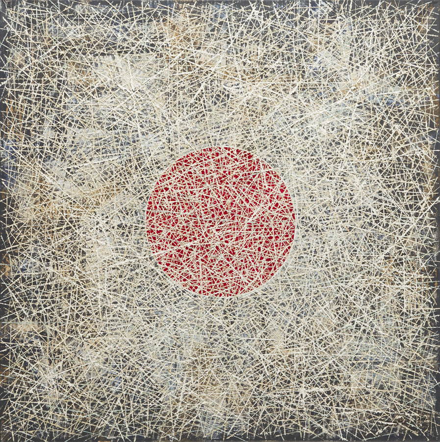 olej/płótno, 100 x 100 cmsygnowany, datowany i opisany na odwrociu: 'ALEKSANDER | ROSZKOWSKI | 1057 "CZERWONE ZAĆMIENIE" | 2013'