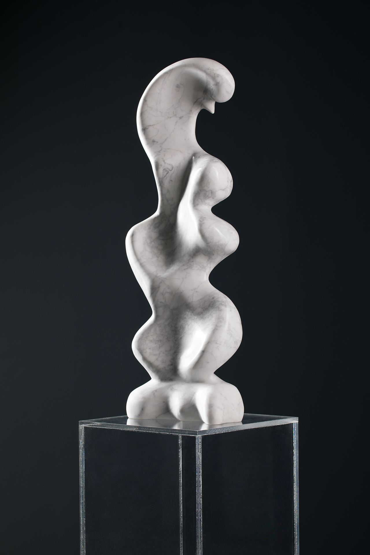 Artysta należy do grona najciekawszych rzeźbiarzy młodej generacji w Polsce. Cechą wspólną jego projektów jest nieustanny dialog z tworzywem, który w toku pracy z daną materią, owocuje formą niezwykle naturalną, niemal nienoszącą znamion pracy ręki ludzkiej. Organiczne kształty obecne w pracach Musiałowskiego ilustrują jego przywiązanie do natury i jej immanentnych cech. Obłości w jego rzeźbach sprawiają wrażenie form już obecnych i dobrze zakorzenionych w naszej haptycznej wyobraźni i podświadomości. Prezentowana praca Otoczenie dotyku z serii Kształt czułości to łagodna, abstrakcyjna forma, w której każdy widz może odnaleźć swoje skojarzenie. Artysta, mieszkający w pobliżu lasu w podwarszawskiej wsi, przygląda się często młodym zwierzętom, których dopiero kształtujące się ciała stanowią inspirację dla form rzeźbiarskich. Gładkie opracowanie szlachetnego włoskiego marmuru daje poczucie harmonii i spokoju, a górna partia rzeźby – niby szyja zakończona małą główką – powoduje u widza mimowolny uśmiech.