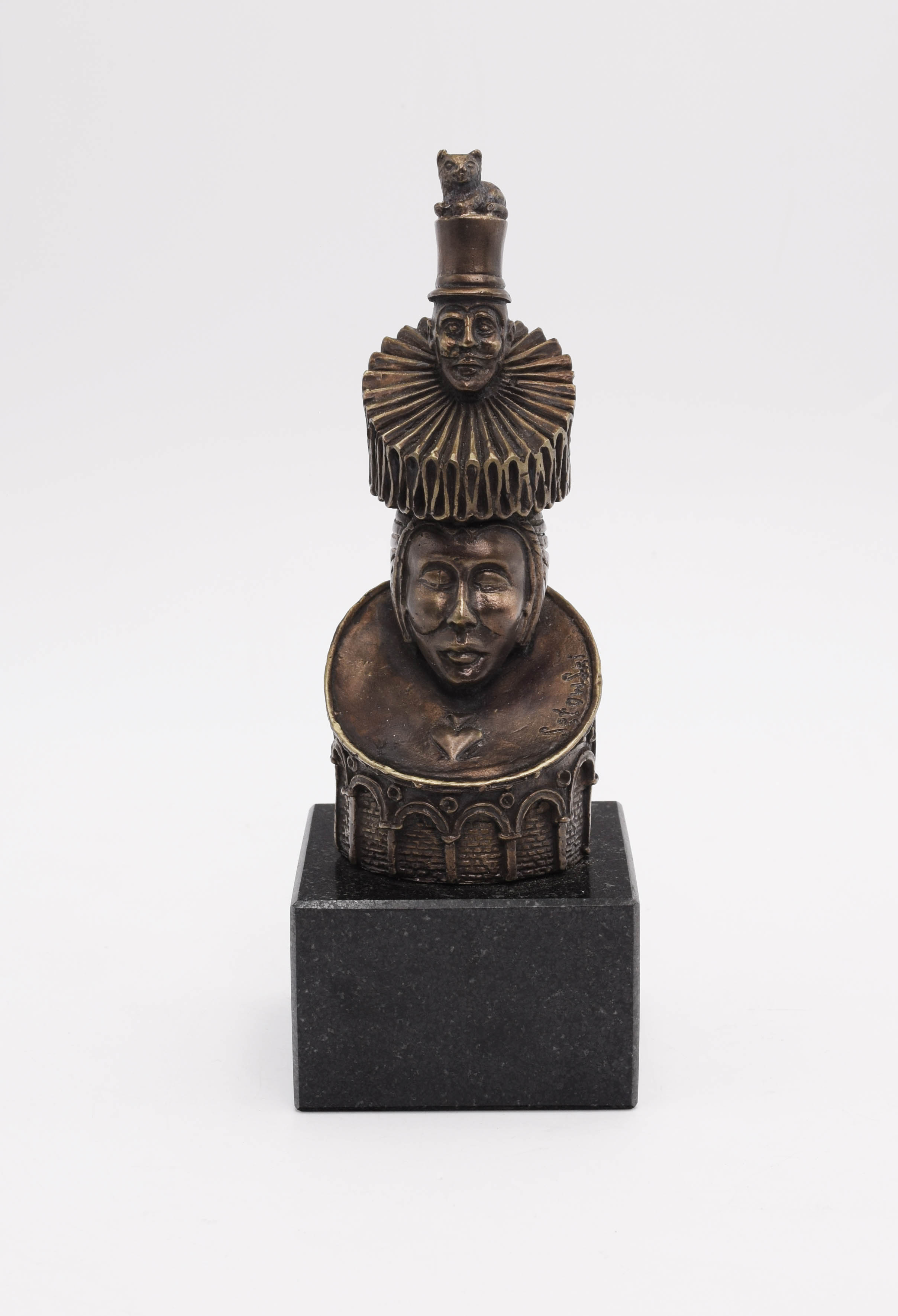 brąz, podstawa kamień; wys. rzeźby: 16 cm; wysokość całkowita wraz z podstawą: 21,5 cm;sygn. z prawej strony: Sętowski.