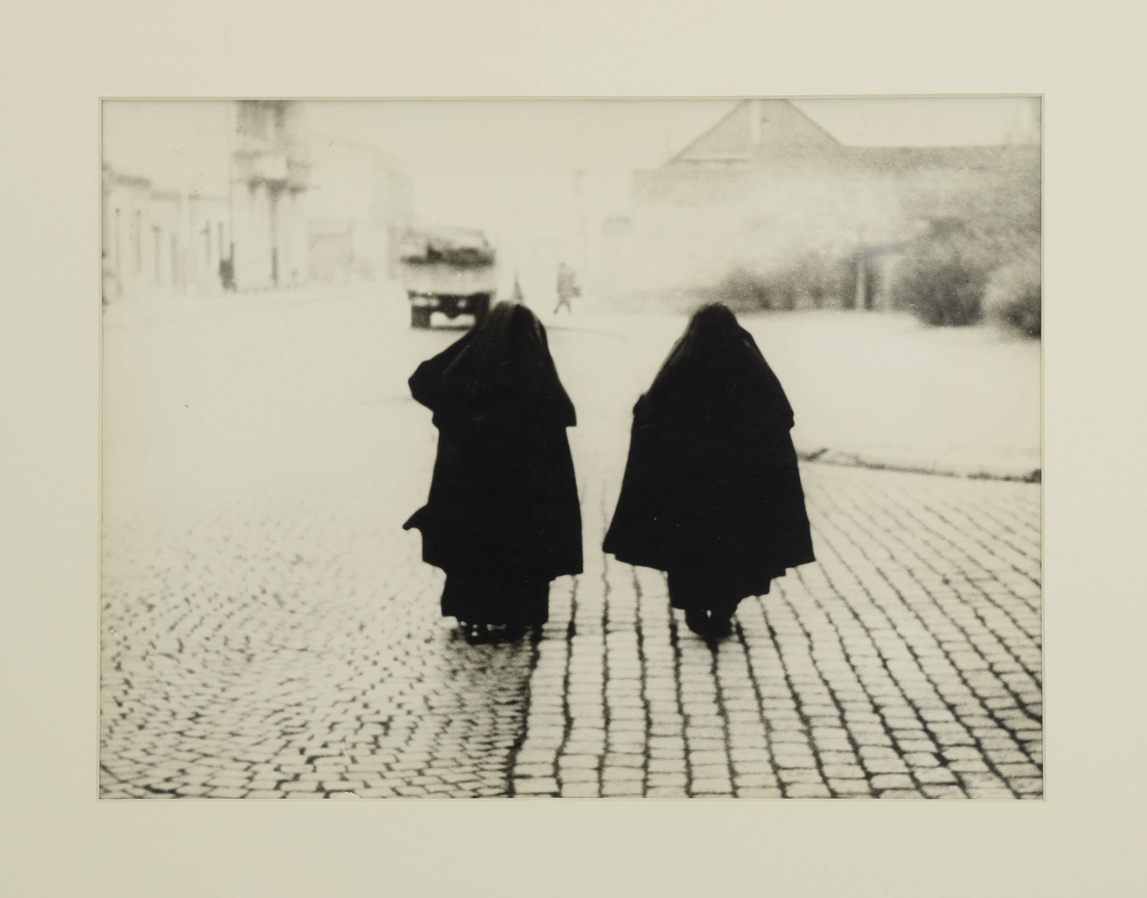 odbitka żelatynowo-srebrowa, vintage print, papier barytowy; 28 x 39,2 cm;opisana na odwrocie: -DANS UNE PETITE VILLE- / NUNS / CHL - BROM / SECTION I, na odwrocie pieczęć autorska.