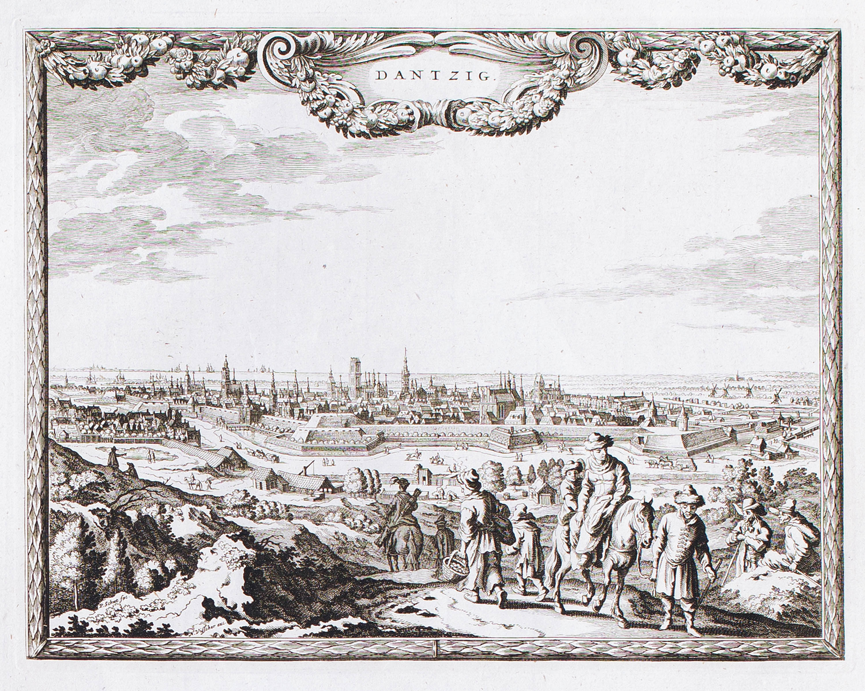 Panorama Gdańska od południowego zachodu, Amsterdam, ok. 1650miedzioryt, wym. 22 x 27,8 cm (odcisk płyty)stan zachowania: lekkie zagnieceniaDantiscum Emporium, G97/1