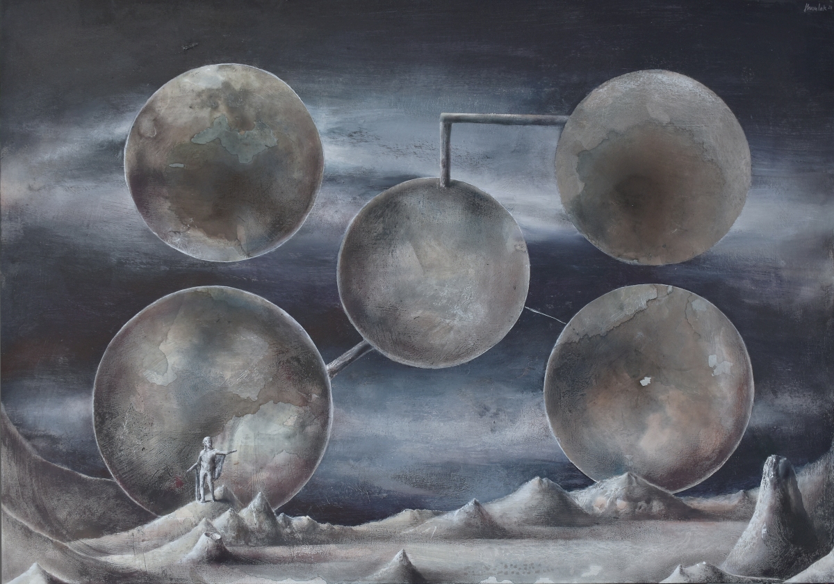 technika mieszana (akryl, tempera), płótno na desce, 70 x 100 cm,