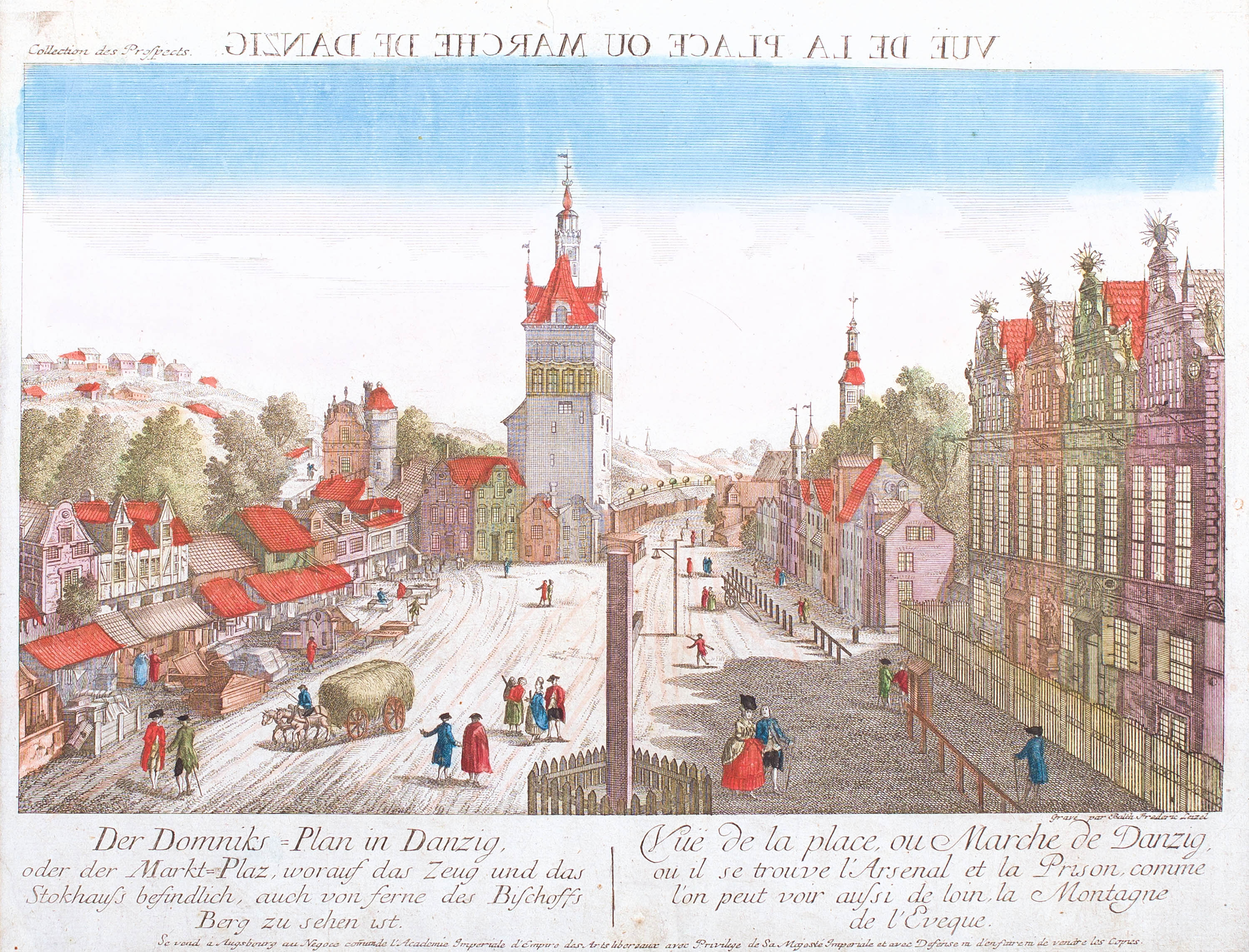 Targ Węglowy w Gdańsku, wyd. Dominicus Fietta, 2 poł. XVIII w.miedzioryt kolorowany w epoce, 29,5 x 39 cm w świetle oprawy