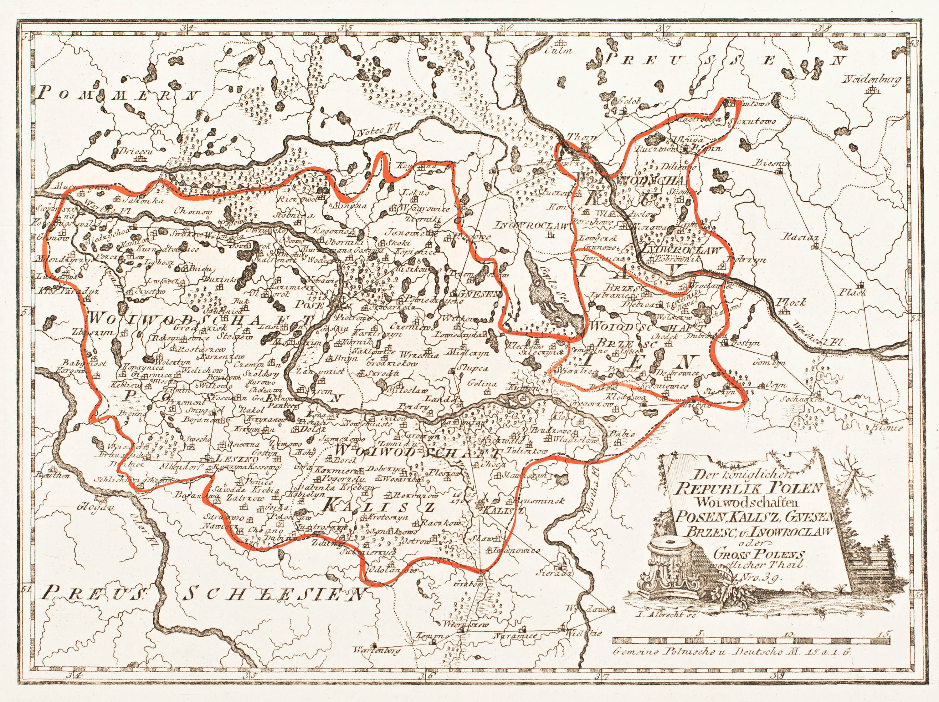Mapa Wielkopolski pochodząca z „Schauplatz der fünf theile der Welt ...”, Wiedeń, 1791 miedzioryt kolorowany, 22,3 x 29,6 cm (odcisk płyty) stan zachowania bardzo dobry