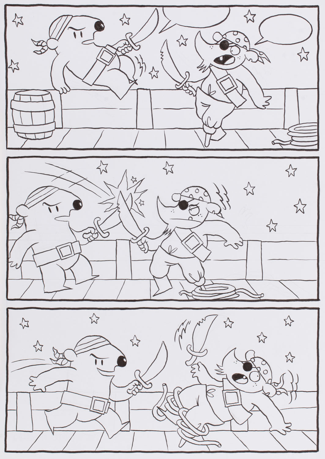 tusz/papier, 29,5 x 21 cmsygnowany i datowany na odwrociu: 'PIOTR NOWACKI | 01.06.2017'scenariusz: Maciej JasińskiWYDANIA:Krótkie gatki, Kultura Gniewu 2017