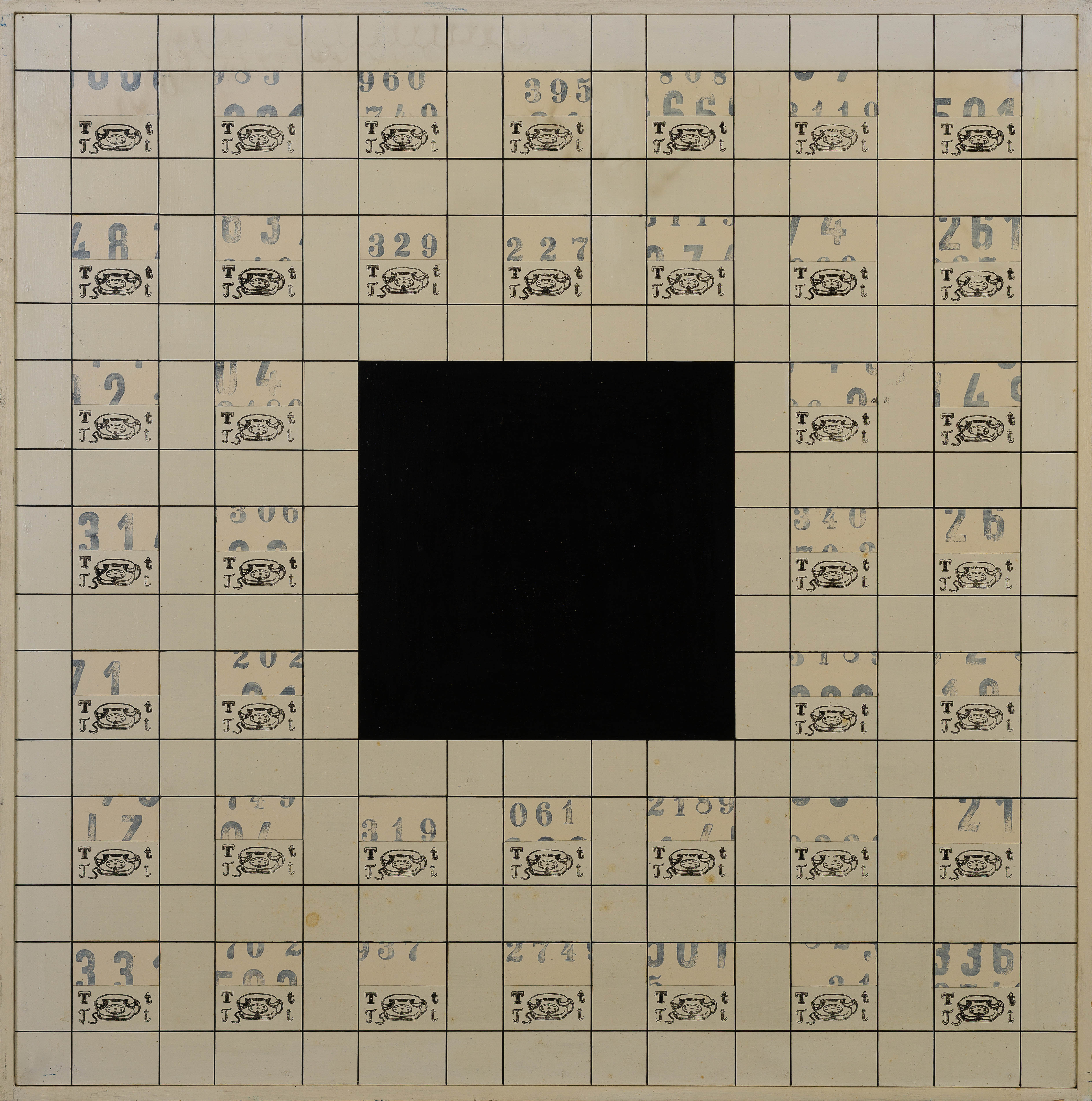sygnowany, datowany i opisany na odwrociu: "DIALOG Z MALEWICZEM" / R. SOWIAK / 1986 / "The dream of K. Malewicz" 1986, nieczytelna pieczęć: KI.III-5333/3270/89