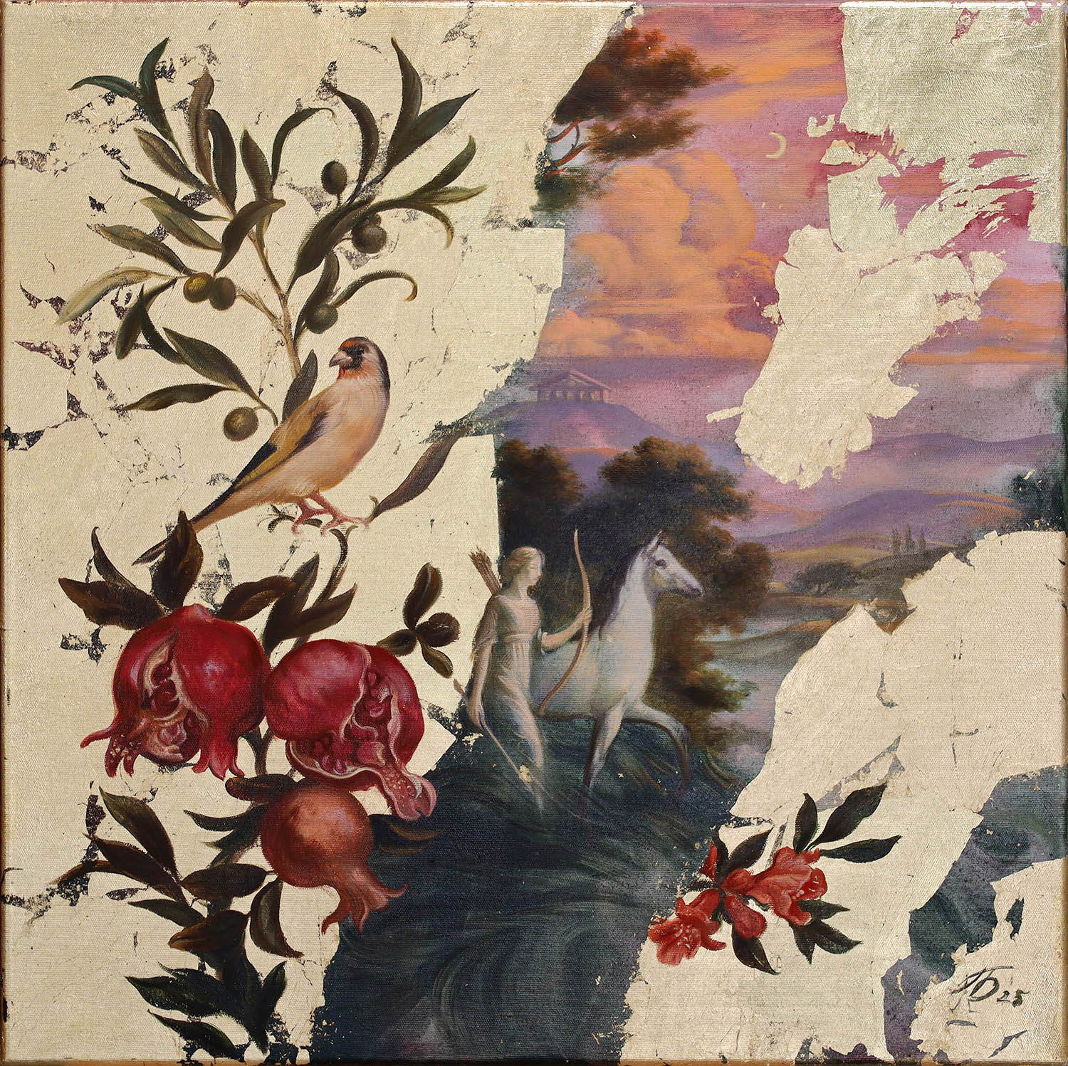 technika mieszana (olej, akryl, szlagmetal), płótno, 60 x 60 cm,
