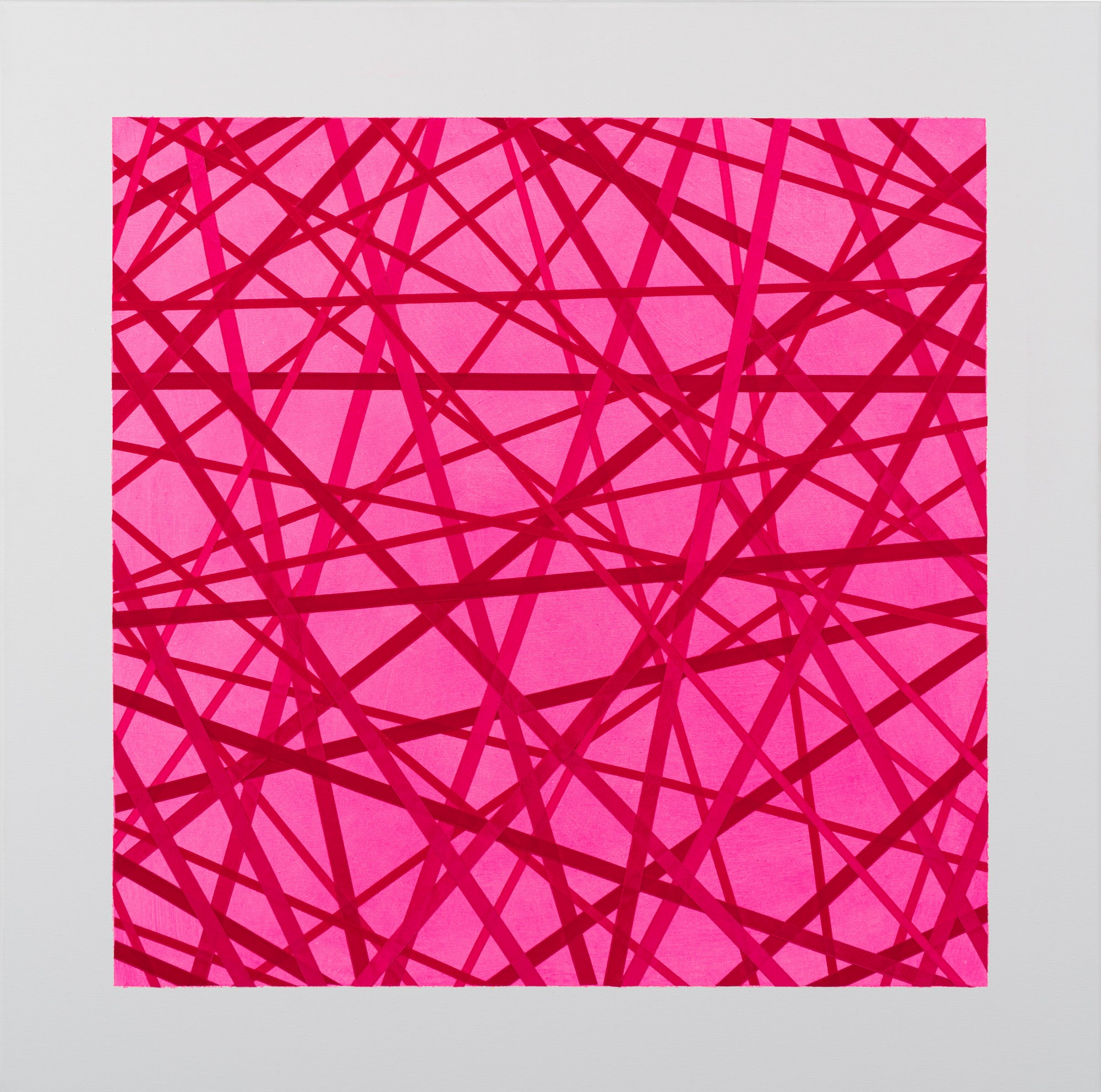 akryl, płótno, wstążka pasmanteryjna, taśma klejąca krawiecka; 80×80 cm;