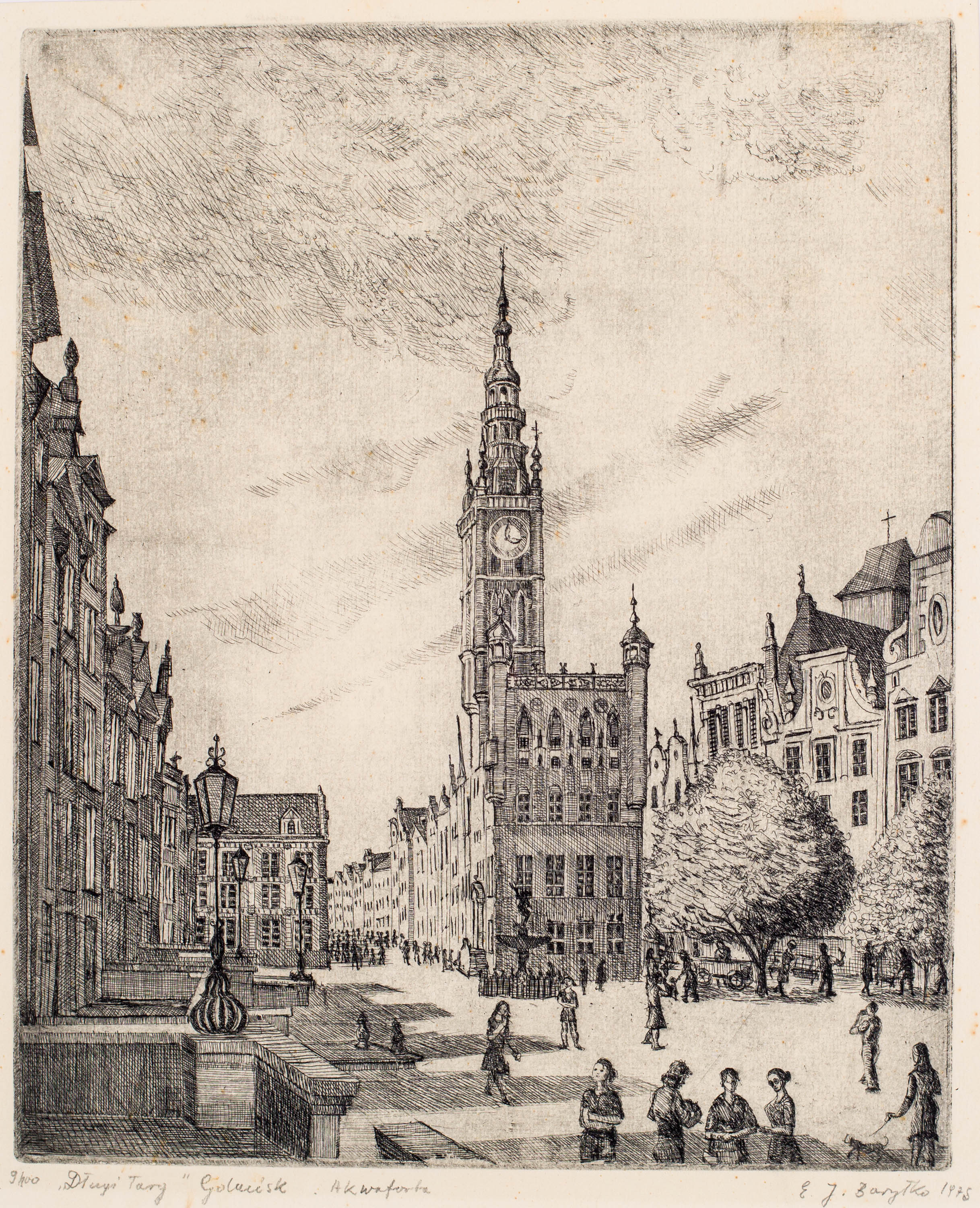 akwaforta, papier, 37 × 30 cm w świetle passe-partoutsygn. i dat. ołówkiem p. d.: E. J. Baryłko 1975, opis. l. d.: 9/100 „Długi Targ”Gdańsk Akwaforta