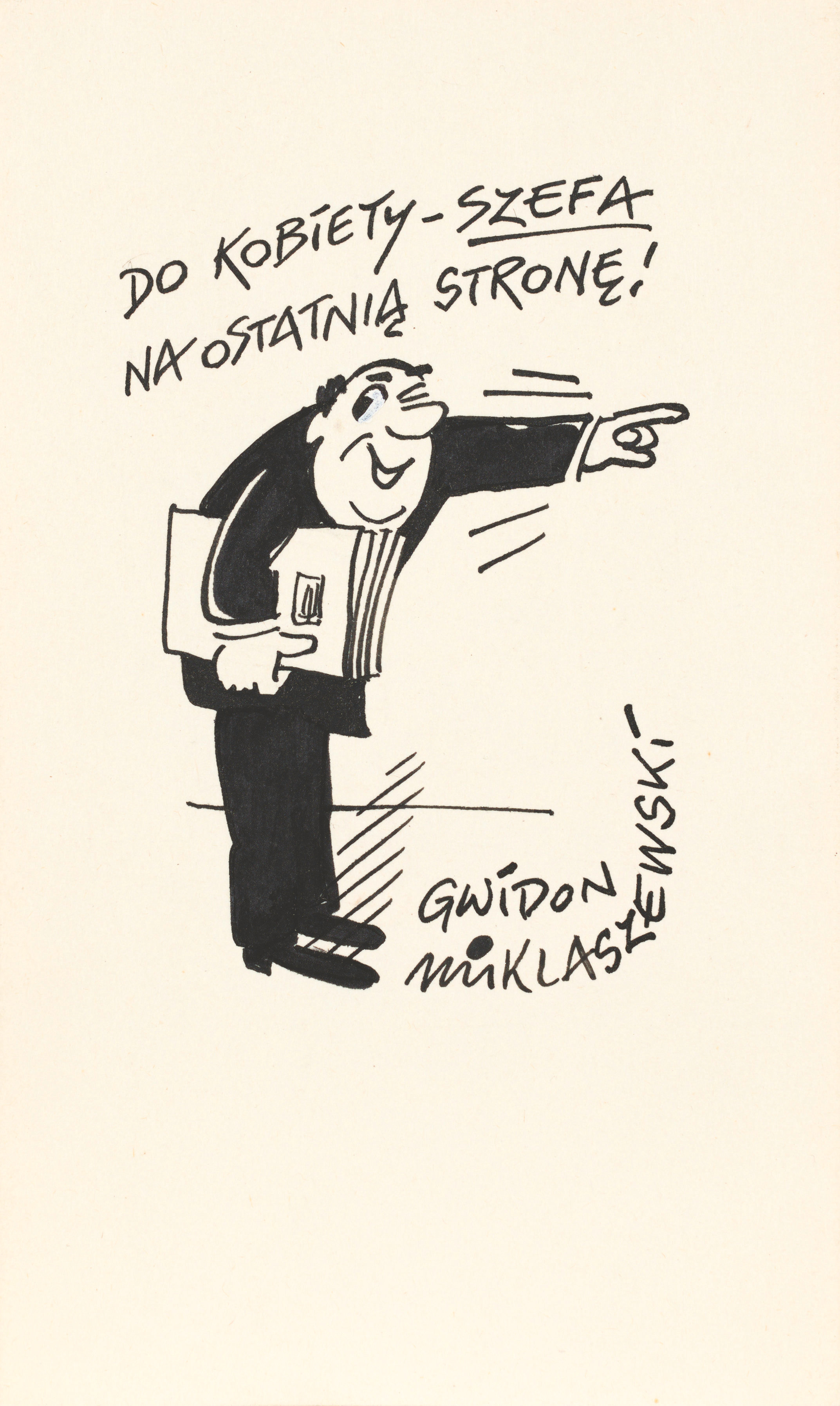 tusz, biała farba, papier; 17,8 x 10,7 cm;sygn. p. d.: GWIDON / MIKLASZEWSKI.Opisany autorsko na odwrocie: NA I KOLUMNĘ.