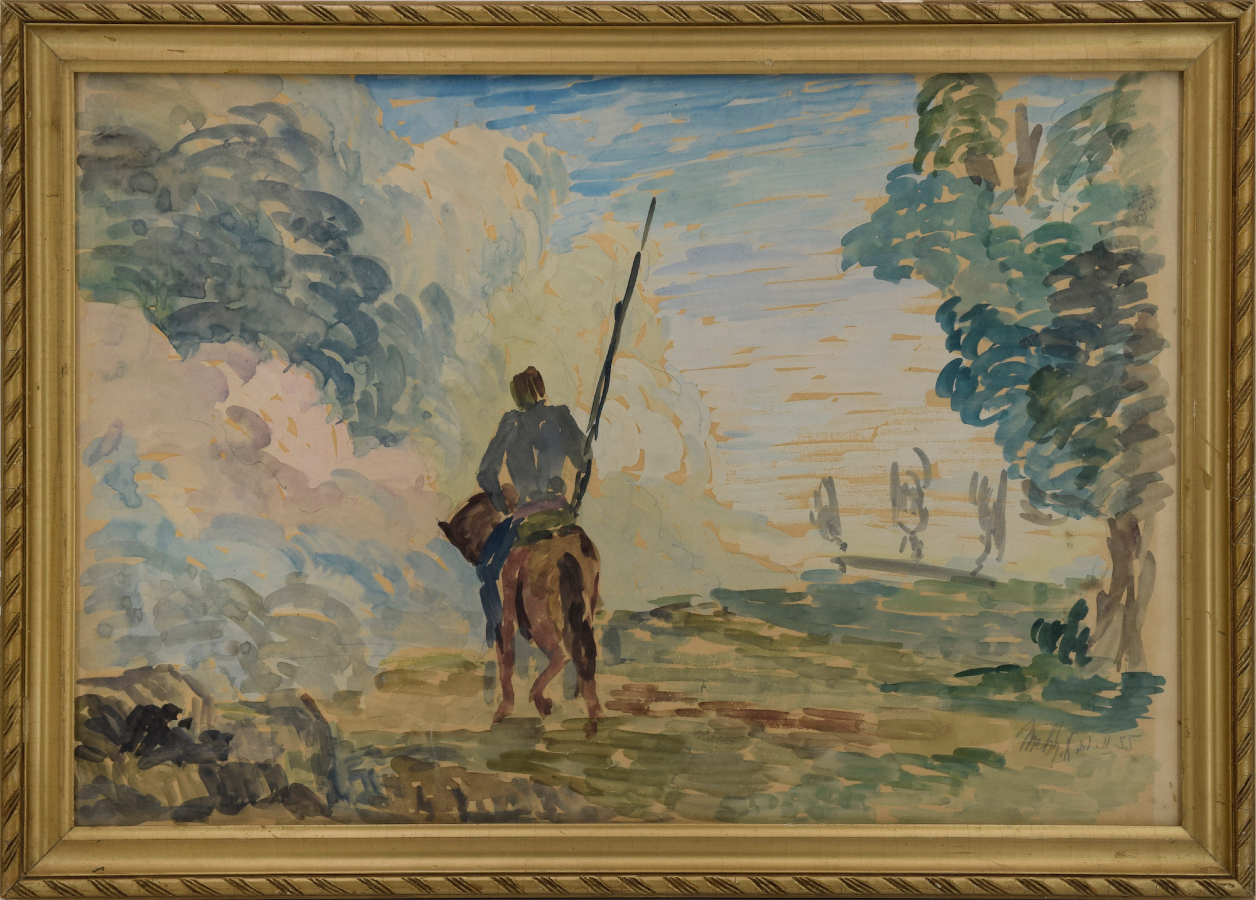 gwasz, papier; 30,5 x 45 cm (w świetle oprawy);sygn. i dat. p. d.: Me... W 21.II 55 (ołówkiem, nieczytelnie).
